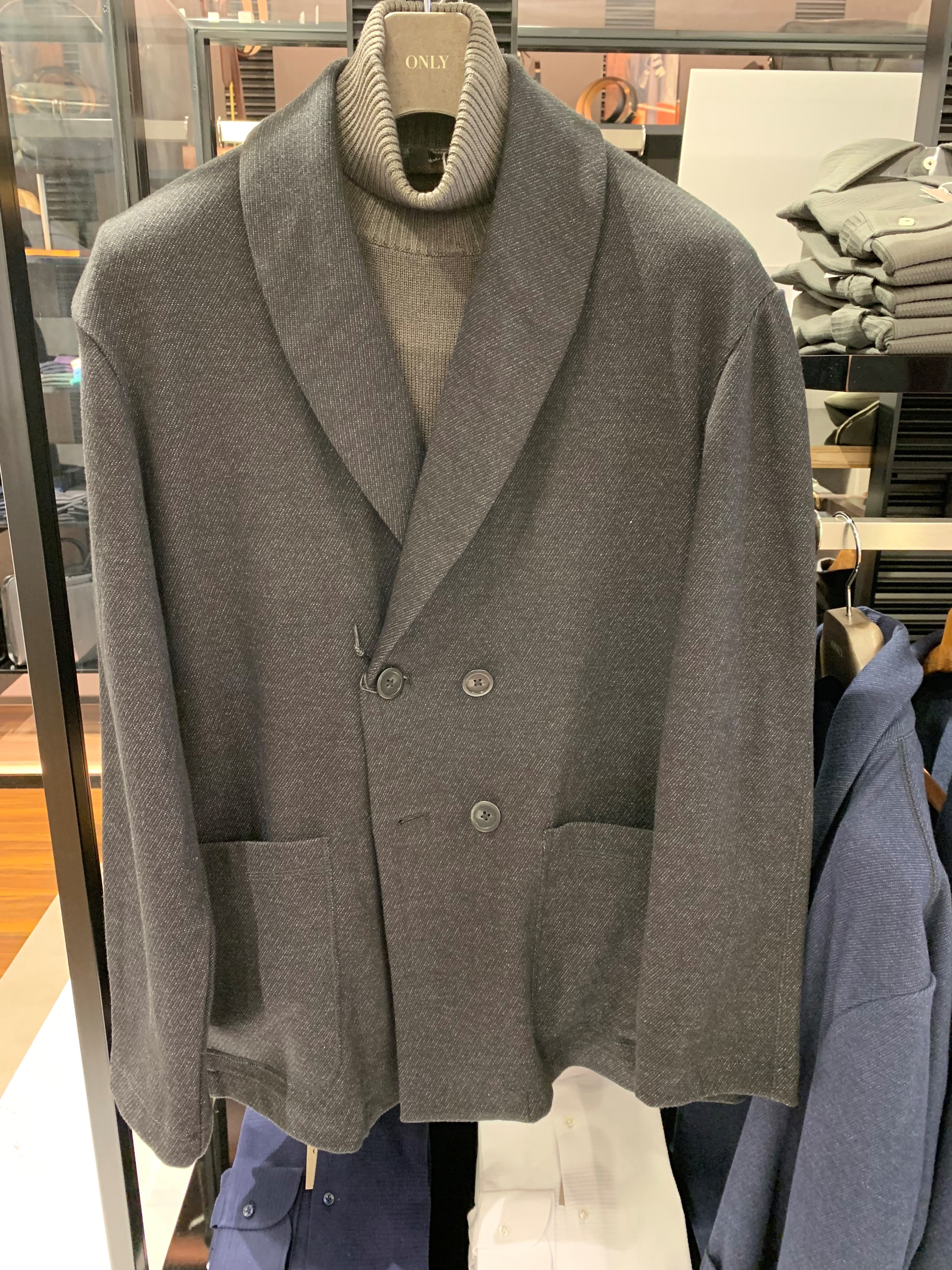 休日はリラックスした雰囲気でお召し頂けるので、ニット等に合わせてジャッコートをさらっと羽織って頂くのもオススメです☆