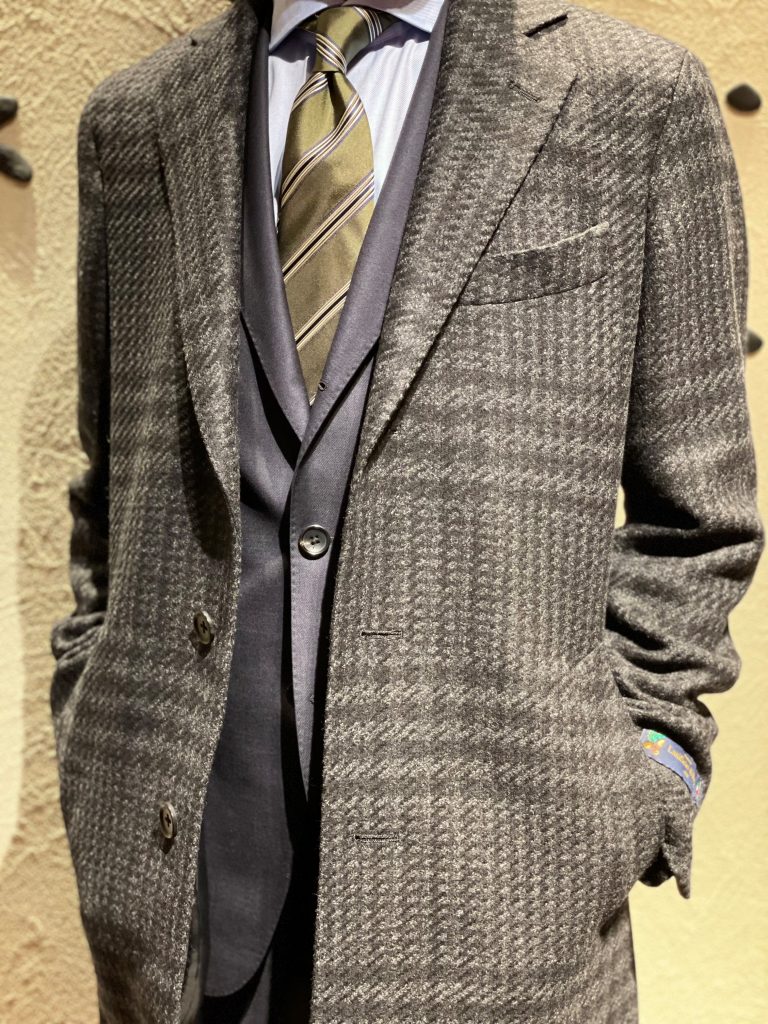 大柄のグレンチェック柄が周りの人と一味違う洒脱な雰囲気を醸し出してくれるので、