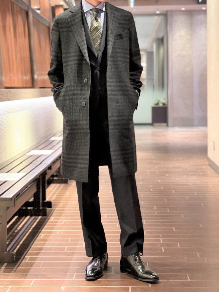 イタリアdi Pray社の生地を使用したクラス感のあるシングルチェスターコートです。
