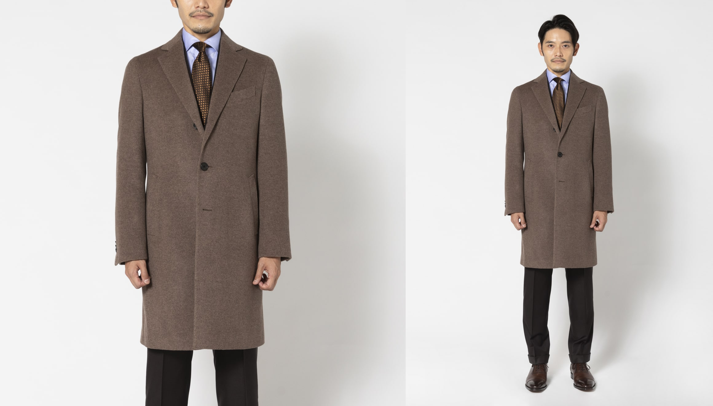 シンプルなデザインだからこそ、生産背景にこだわりスーツ工場で仕立てたチェスターコート。