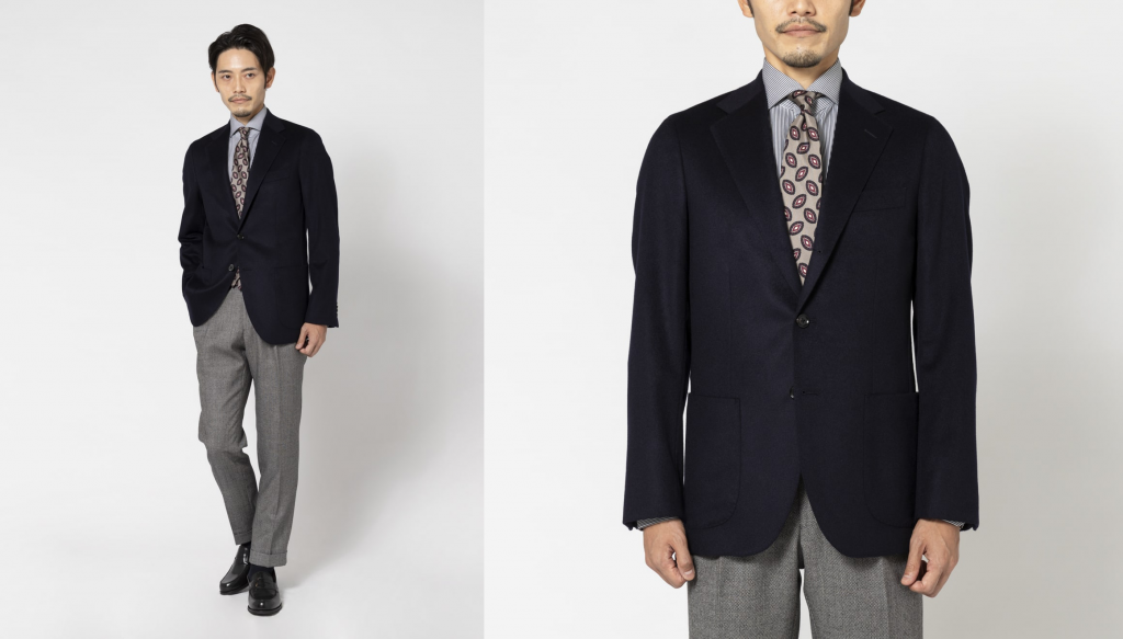コートと同じく仕立てにこだわったテーラードジャケットモデル。