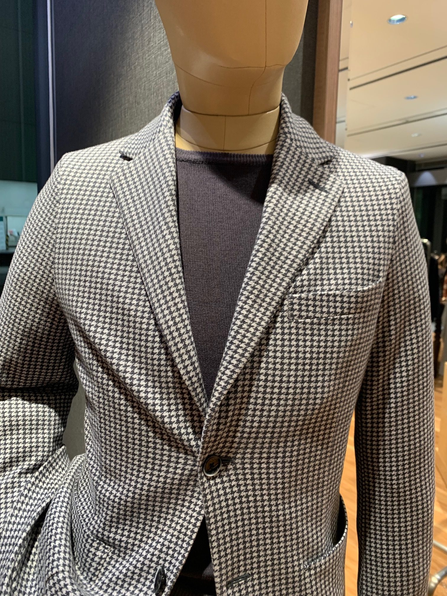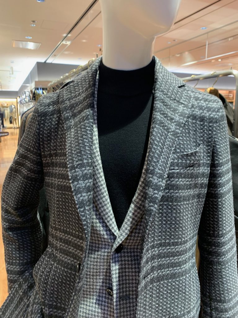 モックネック仕様となっており、スーツやセットアップはもちろん、カジュアルでもお使いいただけます。