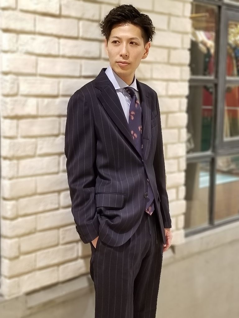 太めのクラシックなストライプ柄ですが、新鮮で都会的な印象で仕上がっており、近年ドレスコードの変化によりニットなど着用される方にもオススメの一着になっています😍😍