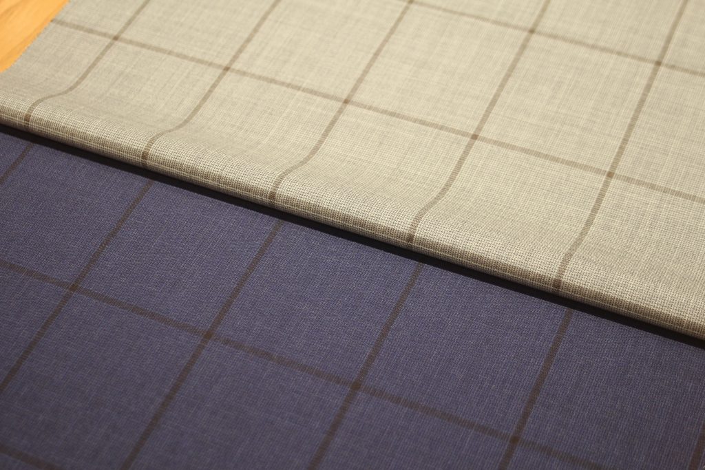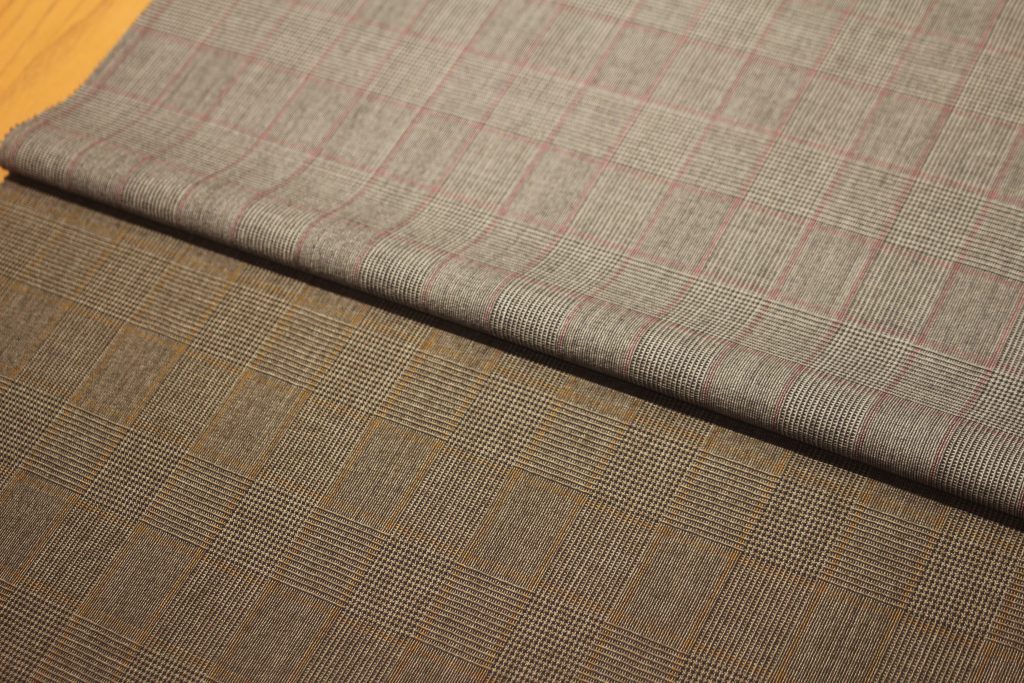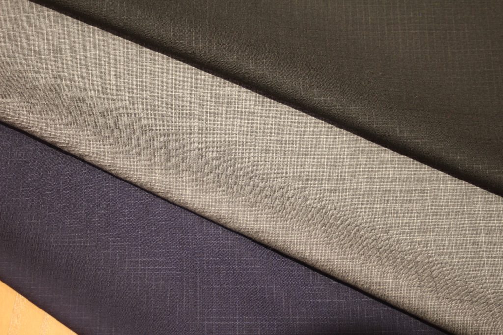 SUPER120’sウールに極細のシルク糸を巻き、縞のような細かい表面感が特徴的な平織りの夏素材生地となっています。