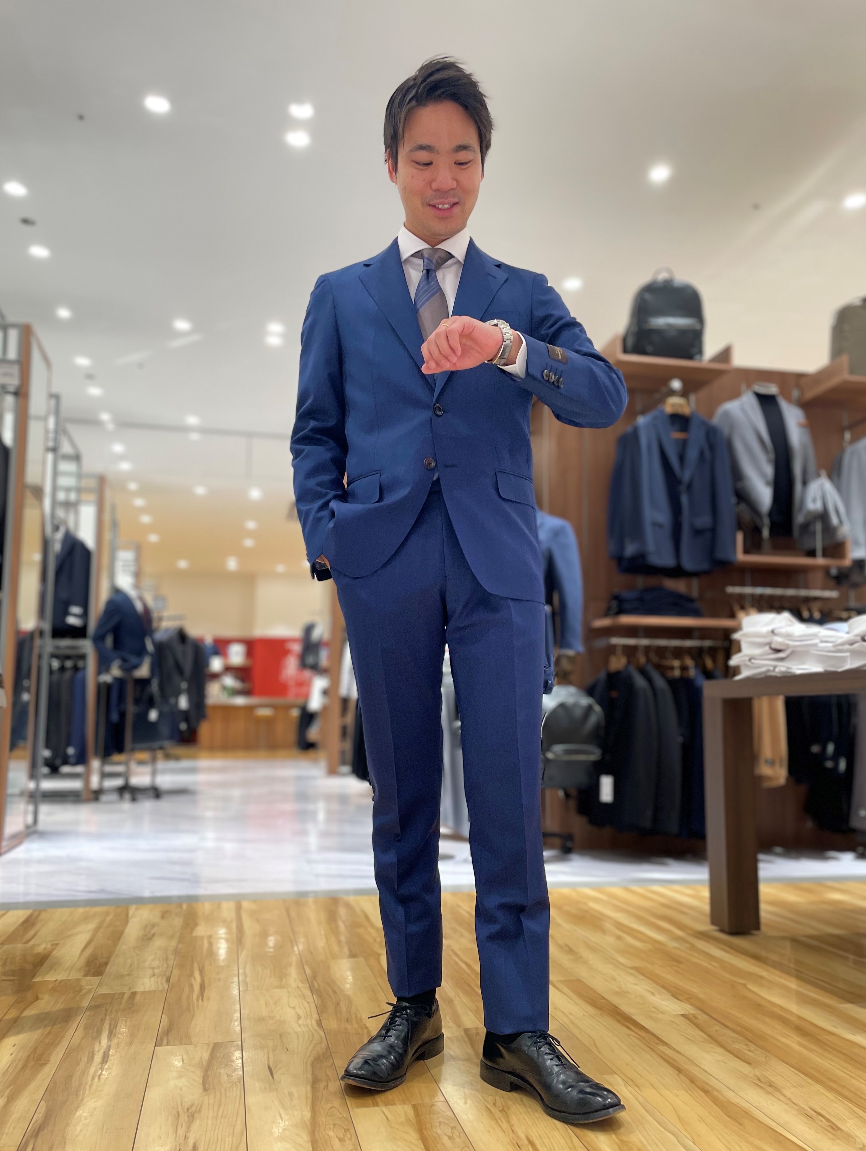爽やかで柔らかなブルーが春に最適で、スーツを着る楽しみを感じられます。