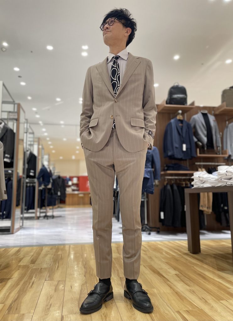 上で紹介したベージュのスーツと同様に、ストレッチは抜群です◎