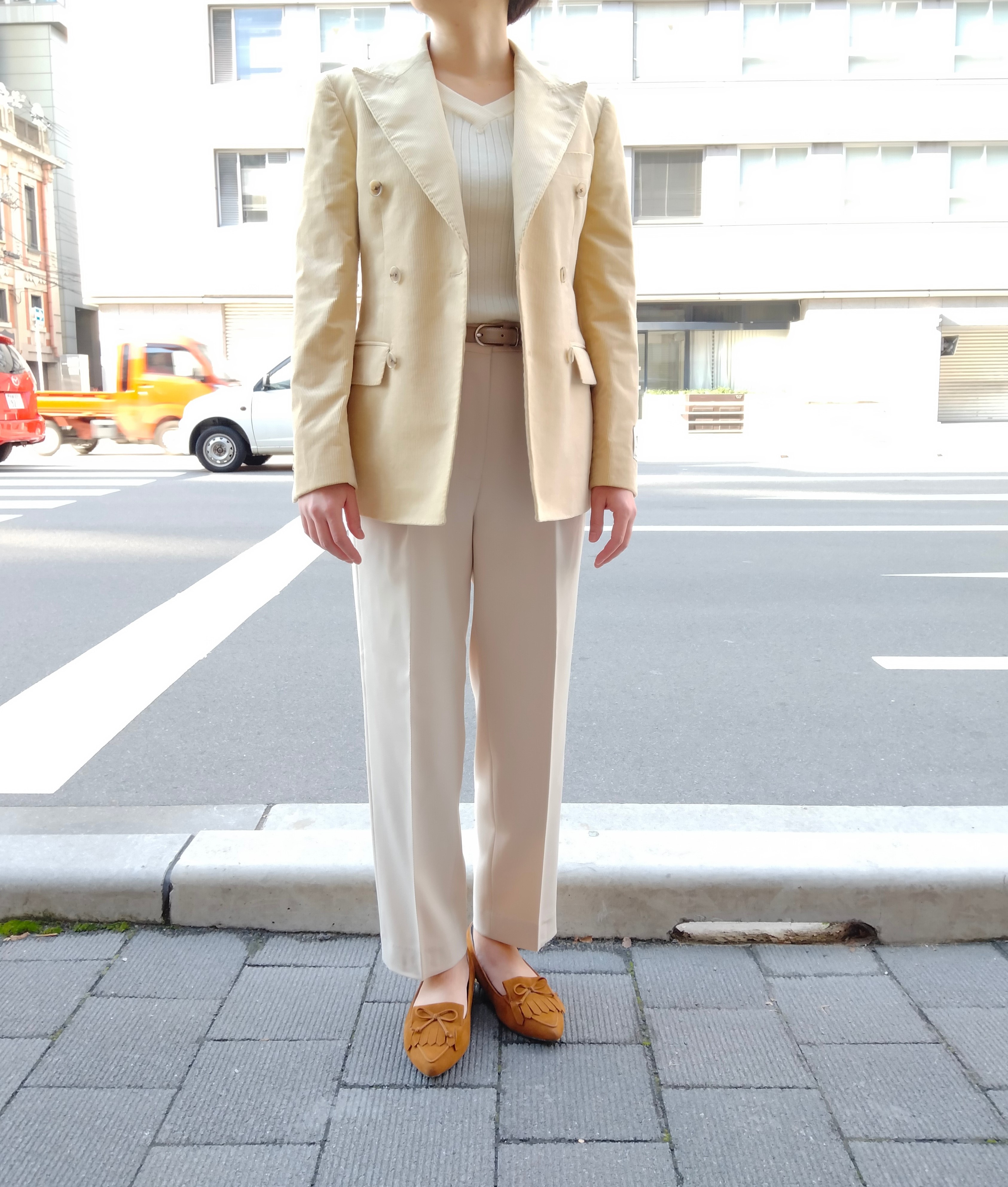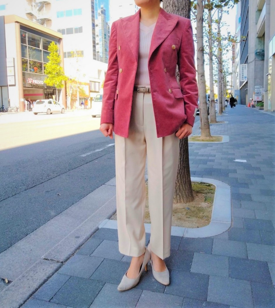 今回は、ダブルブレストジャケットと、ワンタックパンツをご紹介いたします(^^)/