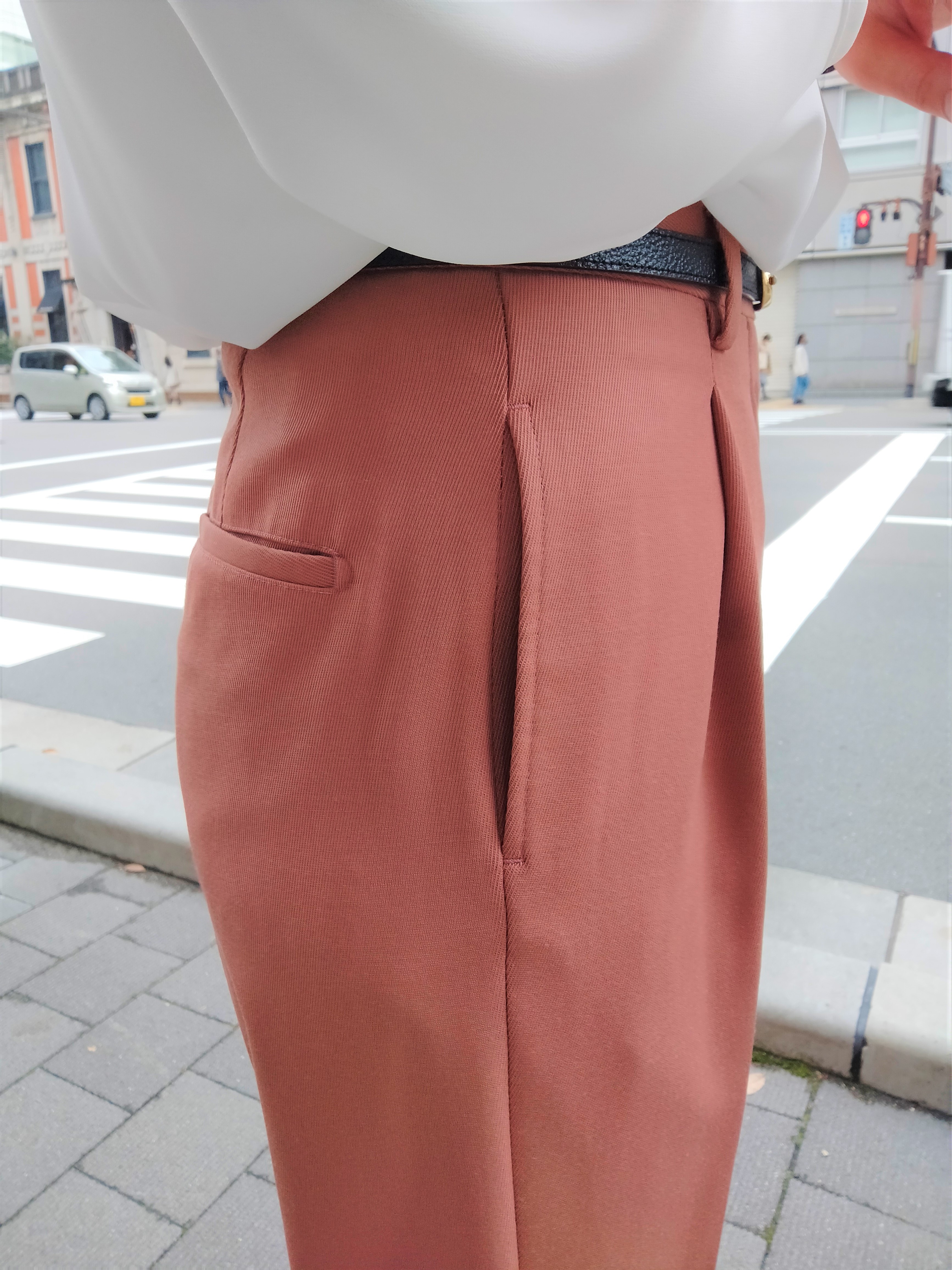 ウエストラインが高いため、腰の位置が高く見え、足長効果が✨✨