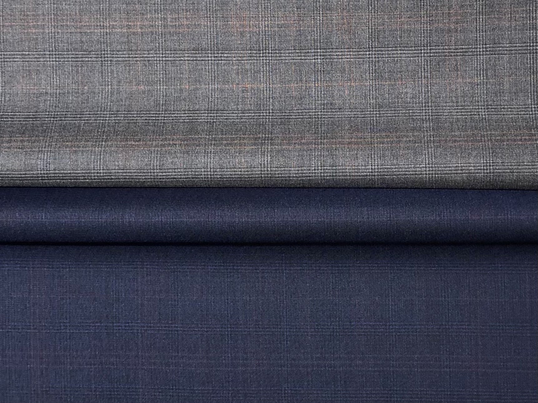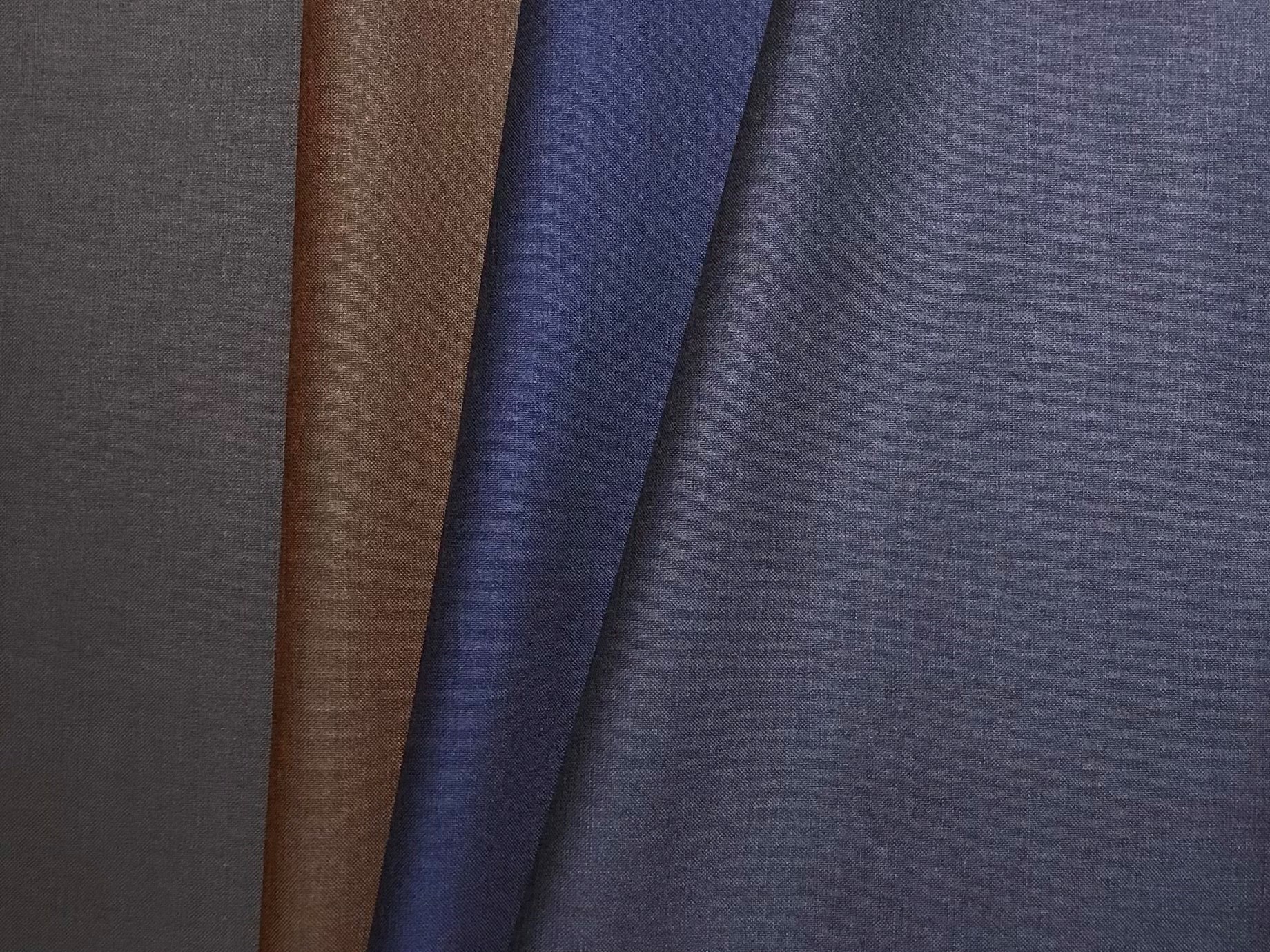 ブルーはタテに青・ヨコにグレーを使い、ブラウンはタテに緑・ヨコに茶の色糸を使用した生地です。