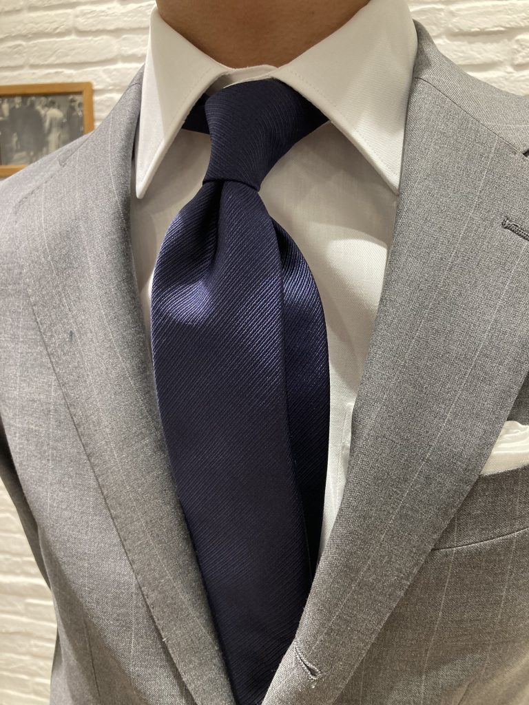 シャツとネクタイをシンプルにまとめる事でスーツがより際立ちますので、無地のネクタイをお持ちでない方にもオススメです!