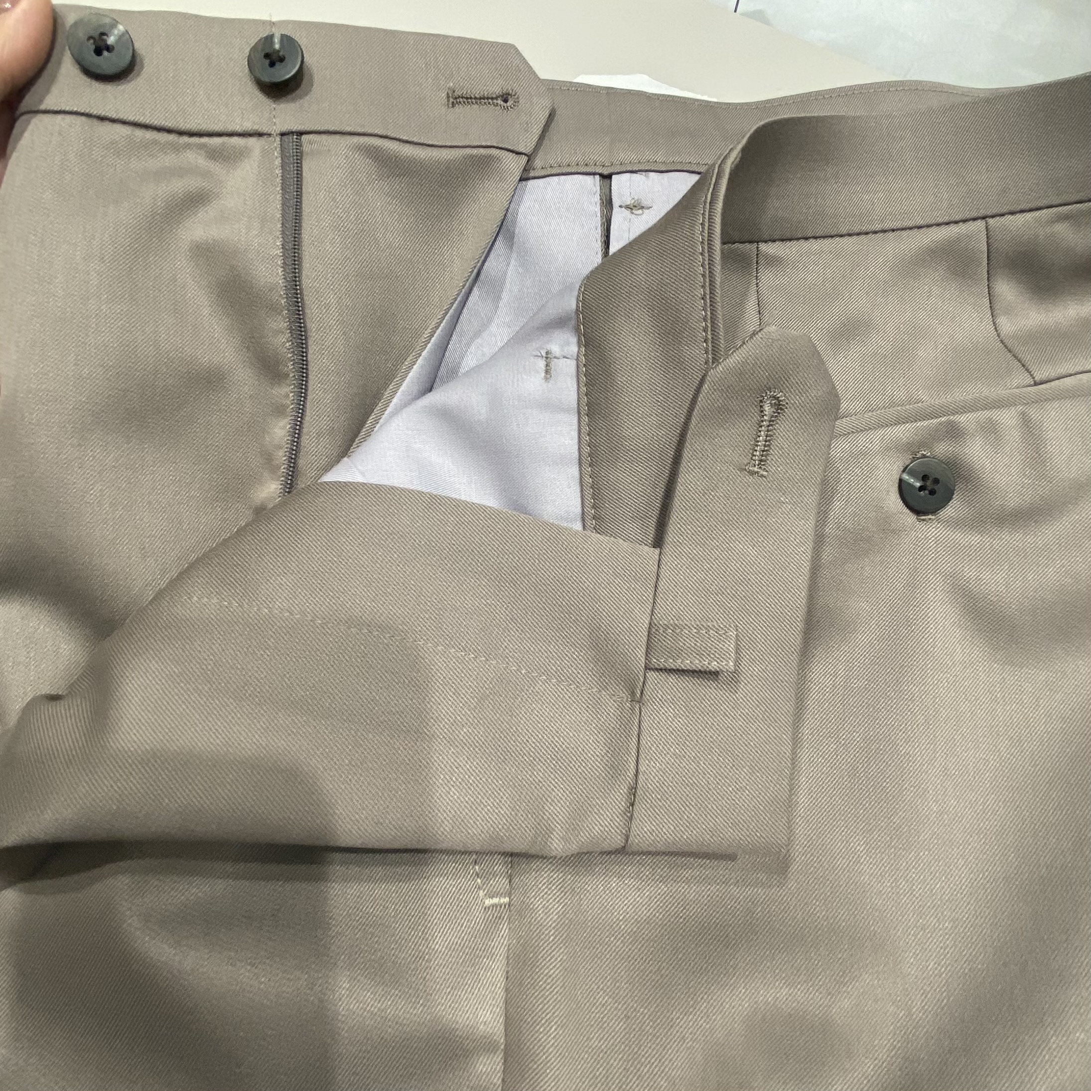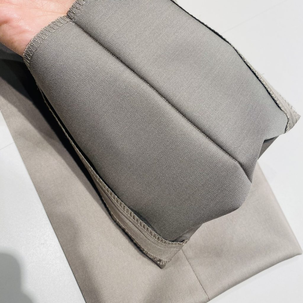 強力クリースは、クリースラインに裏側から樹脂加工を施すことで、半永久的にクリースラインが消えず、
