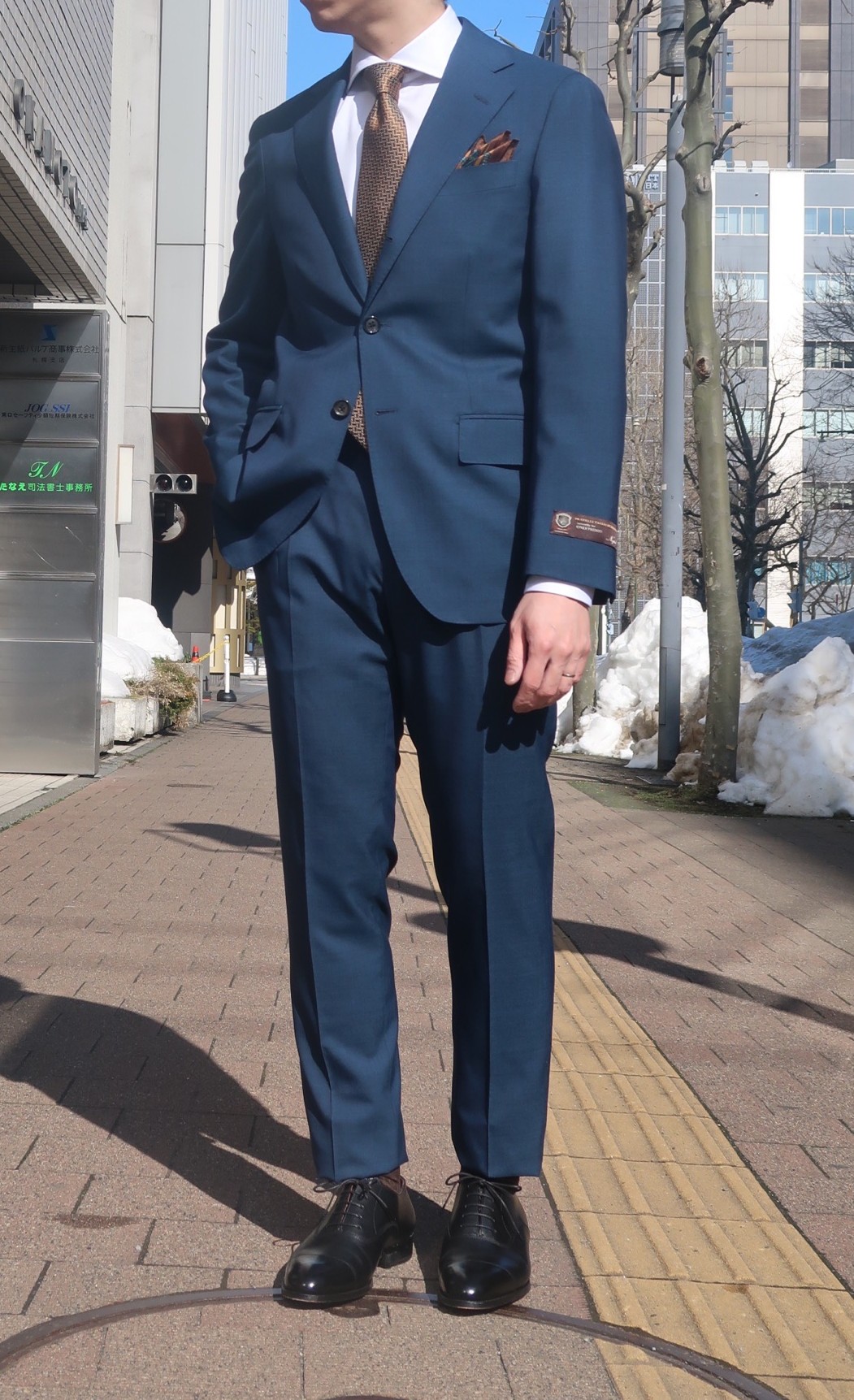 続いては爽やかなナポリブルーが特徴のスーツ✨