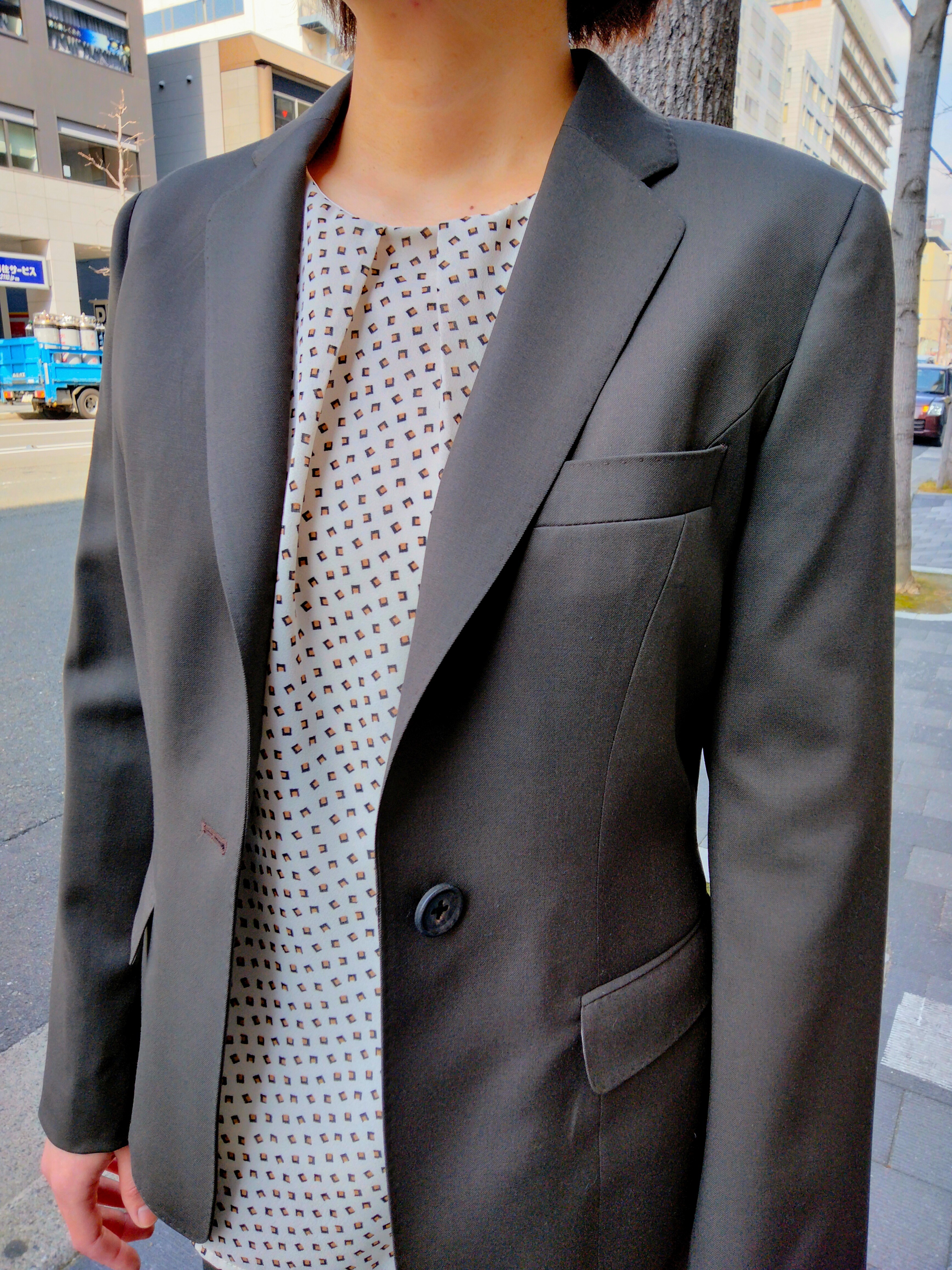 今回は、小紋柄カットソーとイタリアREDA(レダ)社の無地スーツをご紹介致します(^^)/~~~