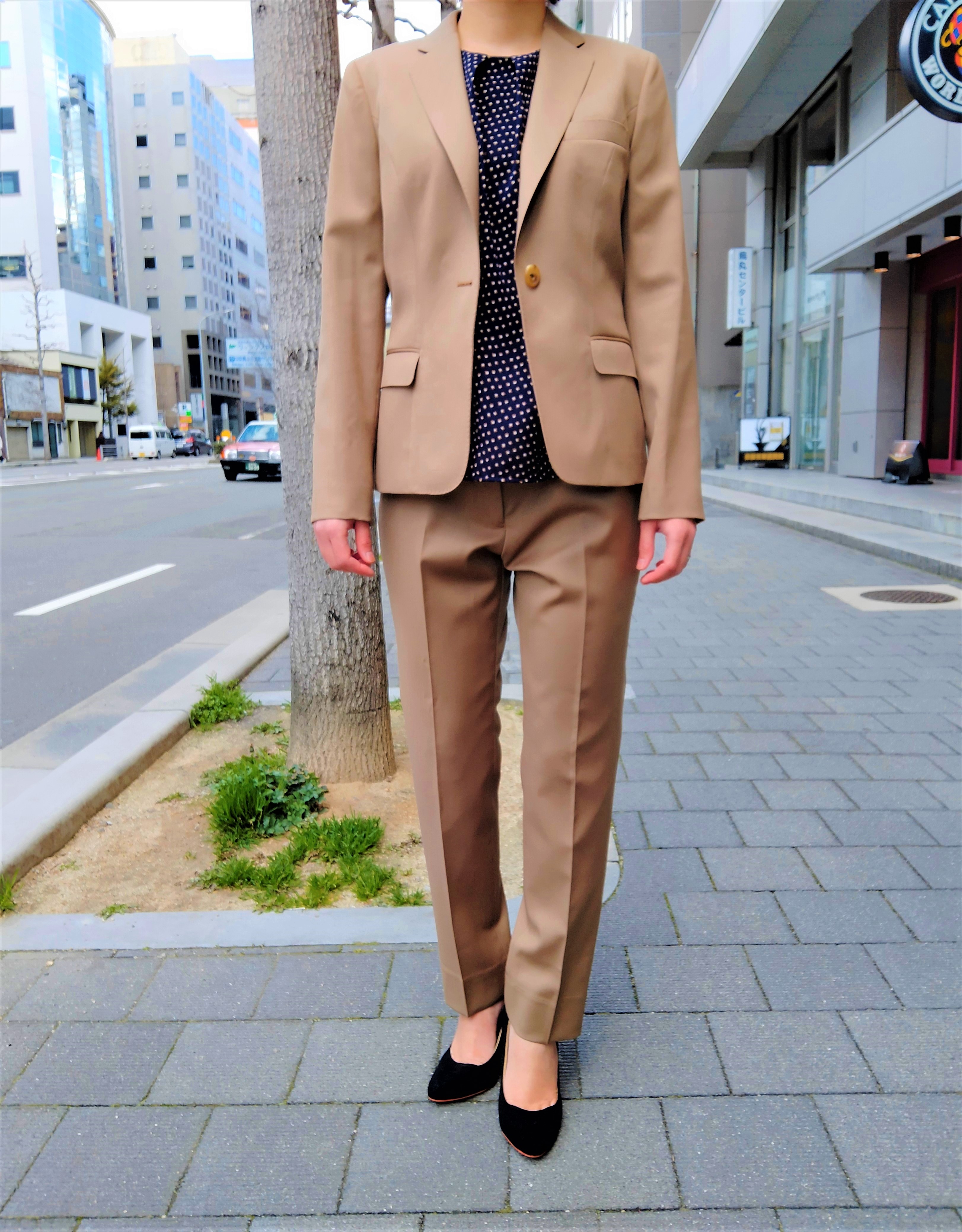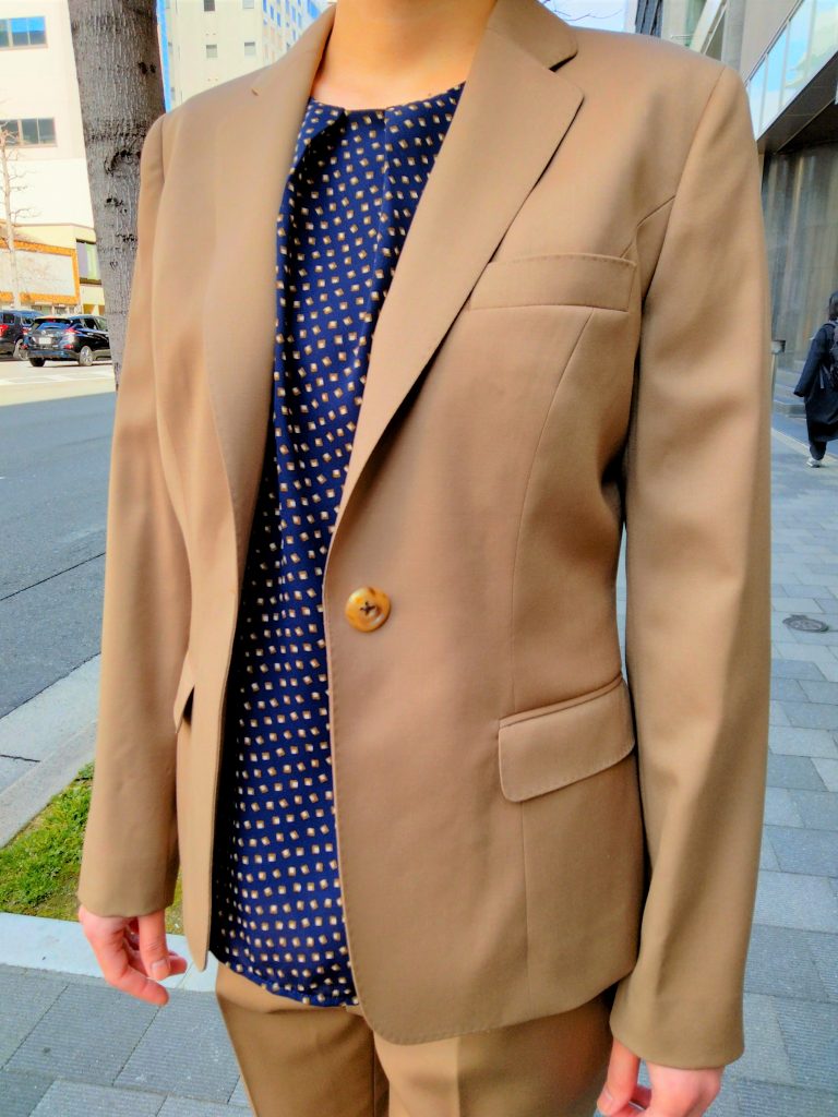こちらのスーツは、カフェオレカラーが柔らかみがありつつ新鮮な印象です(*^▽^*)
