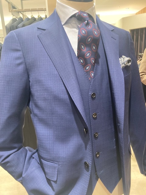 <スーツ>3-0122-45-461/ブルー柄無地/スリーピース/¥64,900(税込)