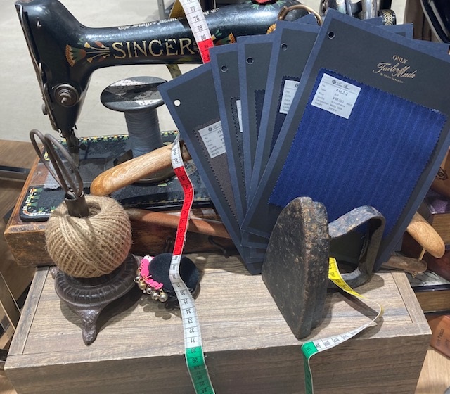 柄が見えるくらい近くで対面するとスーツの印象が変わります。