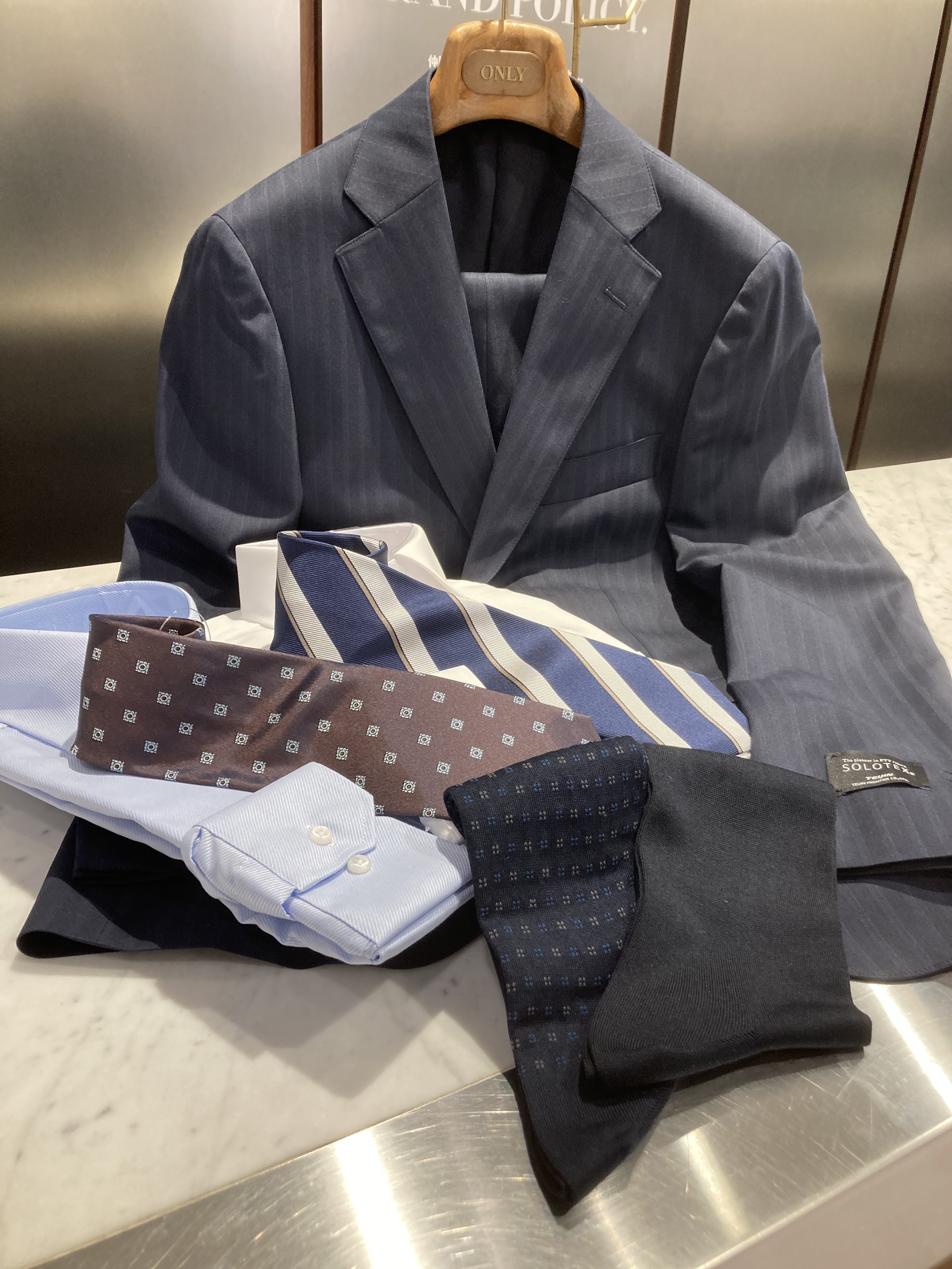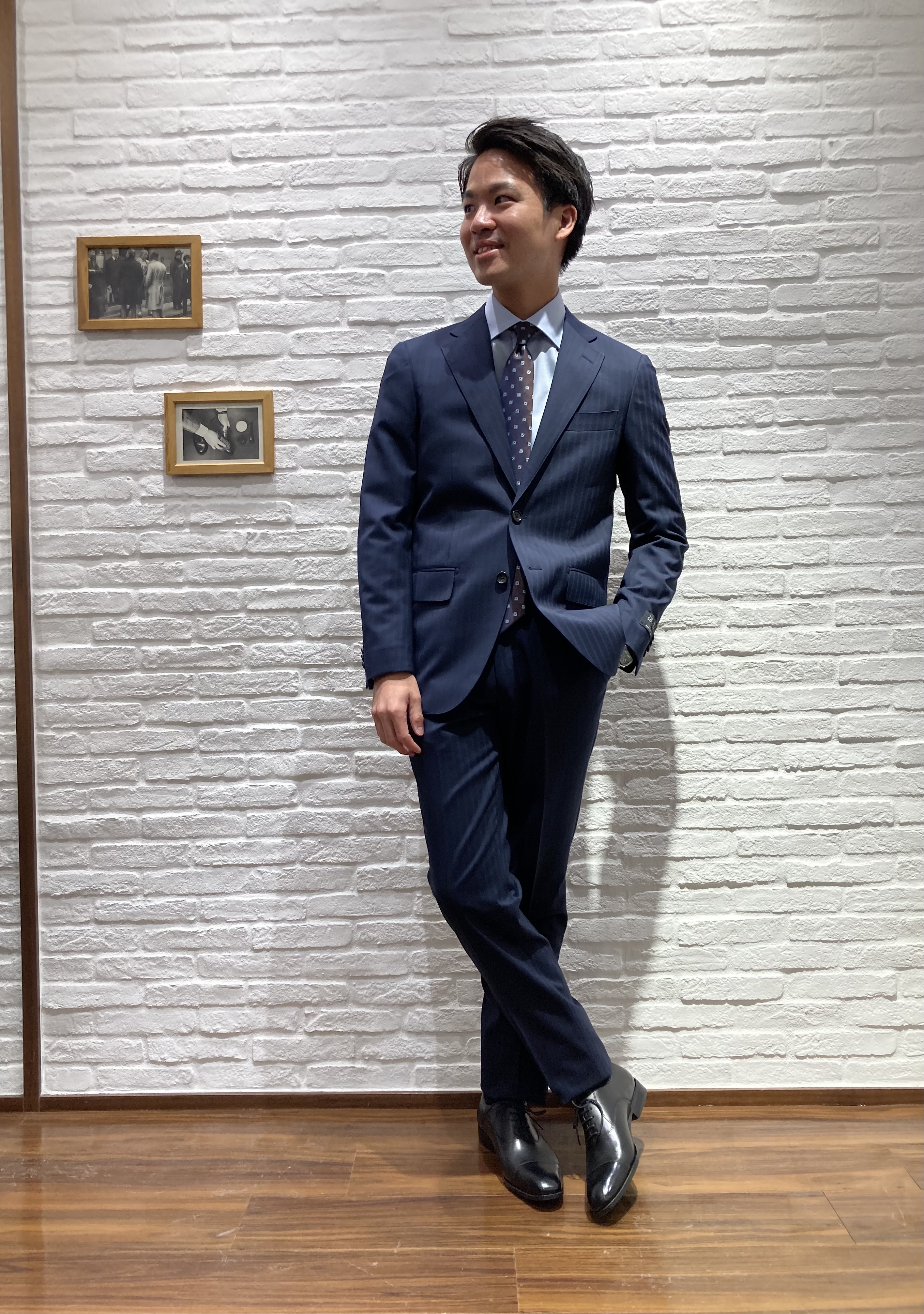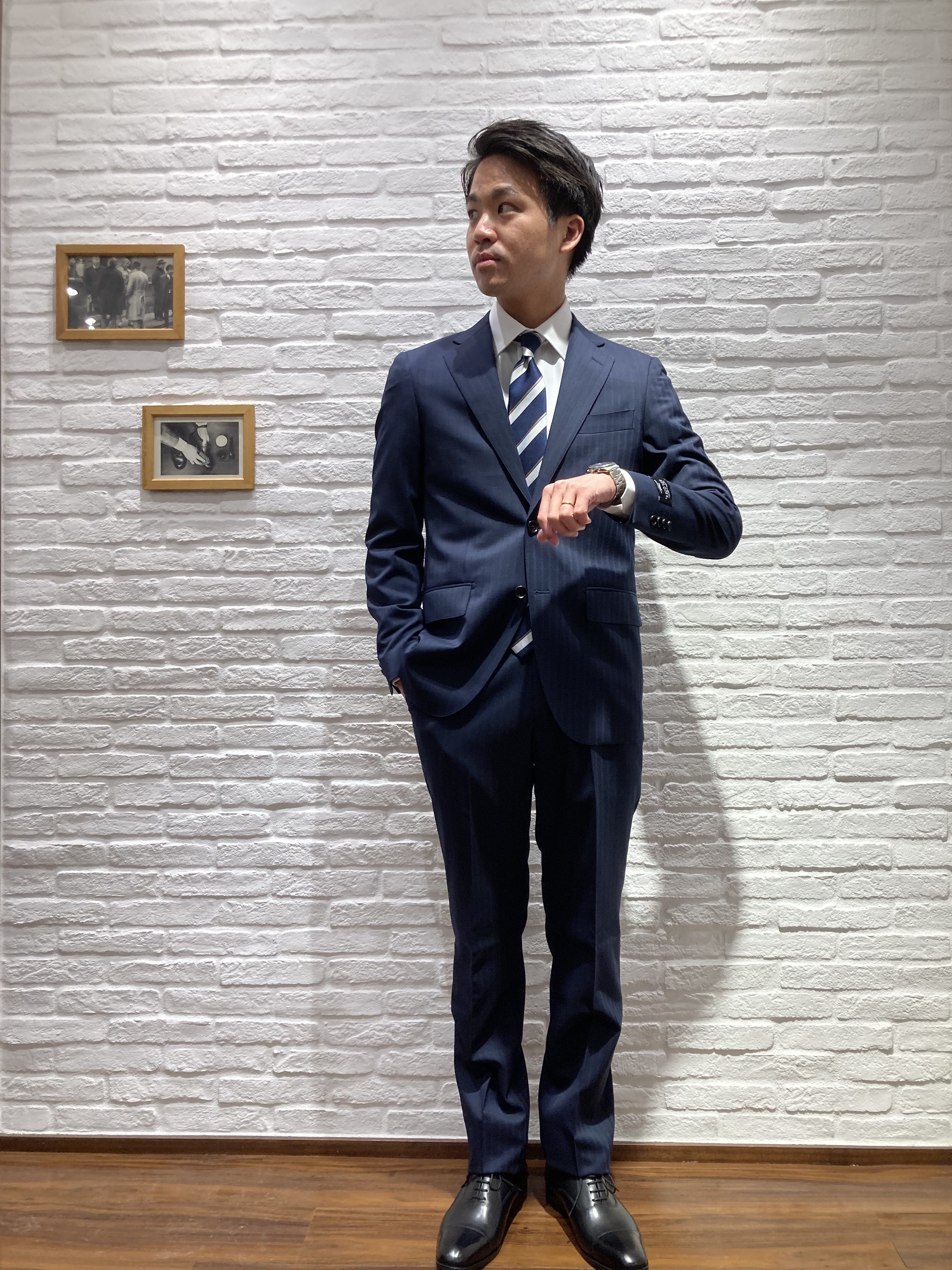 新社会人の方に今回オススメさせて頂くのは、ネイビーのシャドーストライプのスーツです♪