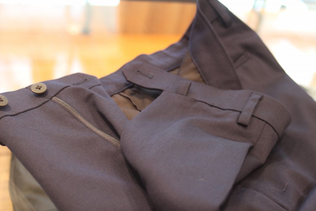 見た目では分かりませんがウエストの芯地に伸縮性を持たせております。