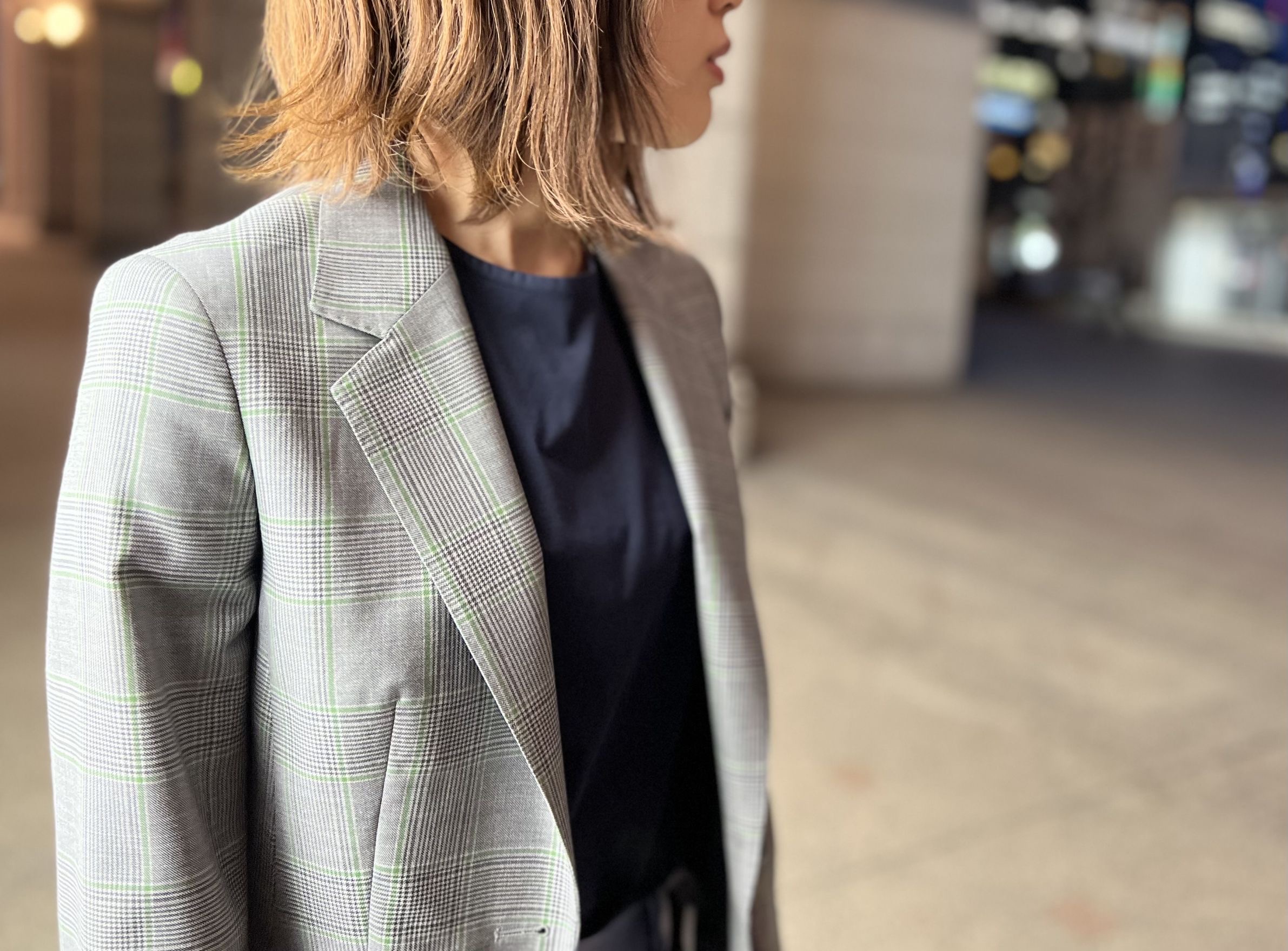 こちらはスモーキーなカラーが特徴的なREDA社のSUPER130´Sの原毛を使用したグレンチェック柄のジャケット💁‍♂️✨