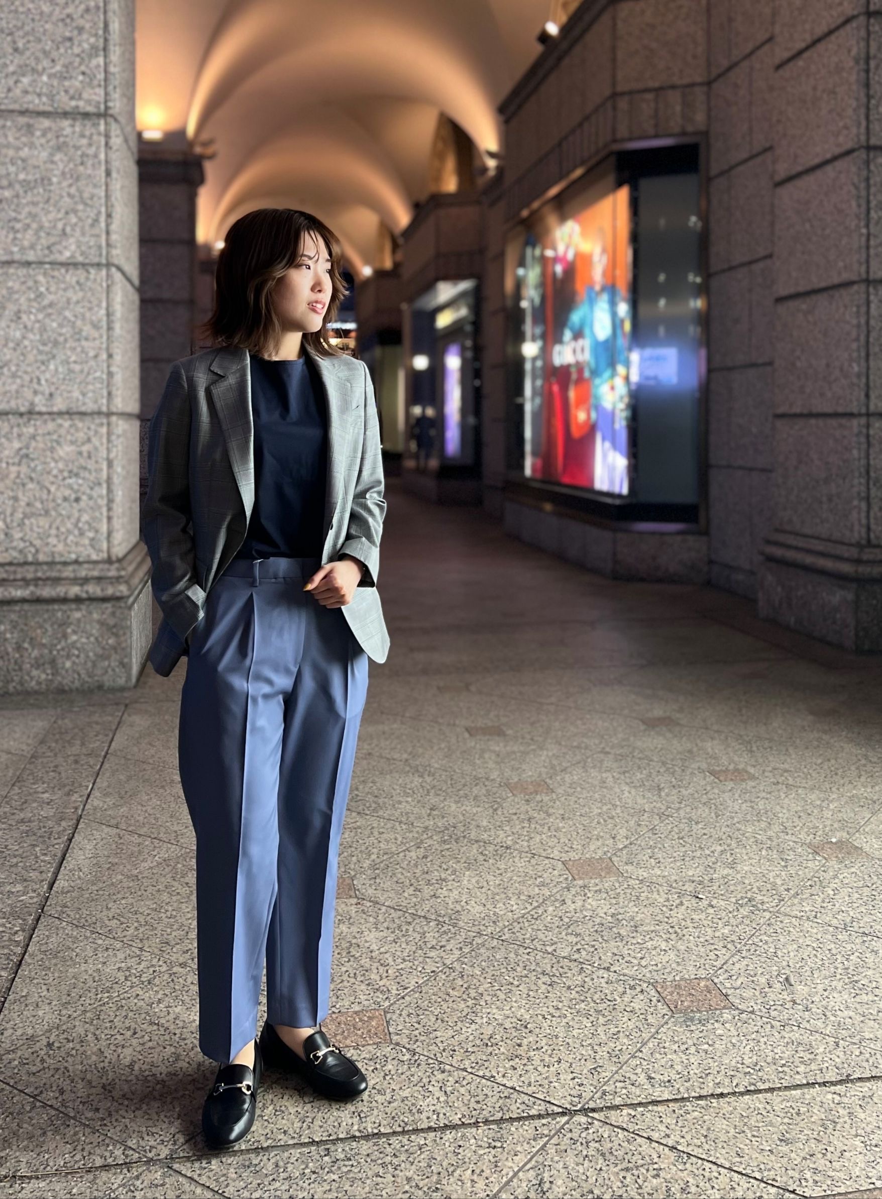 パンツはCANONICO社のSUPER110´Sのワイドテーパードパンツを合わせて優雅な雰囲気を演出しています😆✨