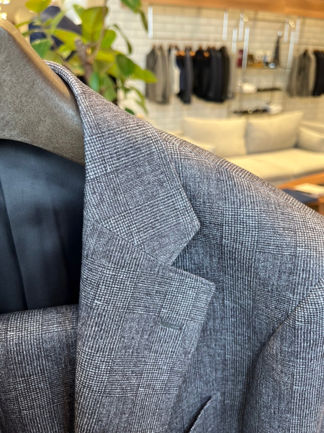 控えめなグレンチェック柄を高精細プリントで載せており、近年のフォーマル過ぎないビジネスシーンにもうってつけです✨