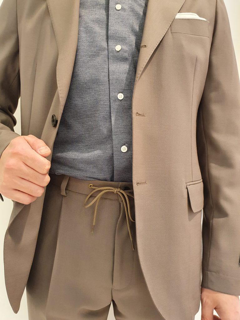 イタリアREDA社の「FLEXO」を使用したホップサック生地のジャケットは、