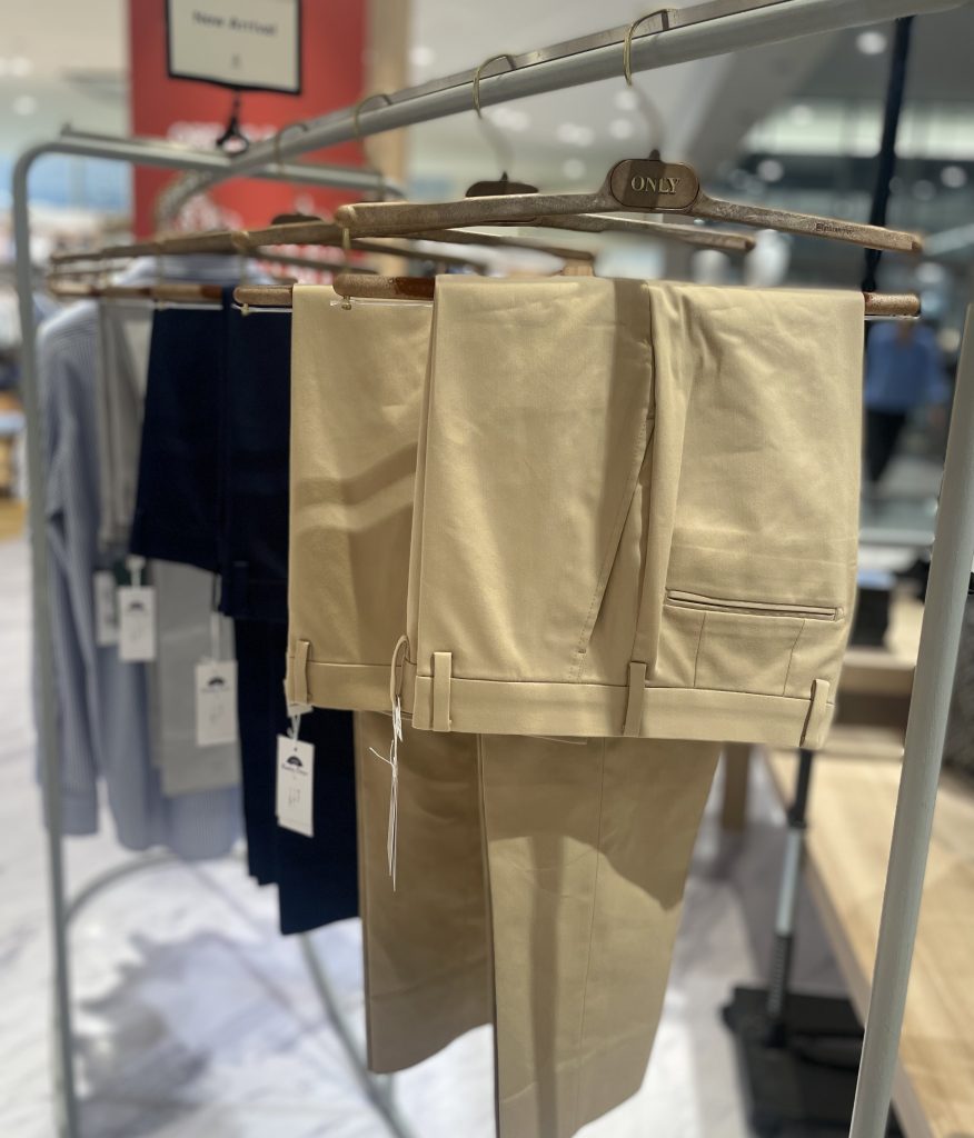 コットンパンツは、クリースが取れやすく、カジュアルに見えがちですが強力クリース加工でビジネスシーンもばっちりです!