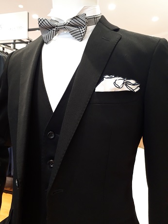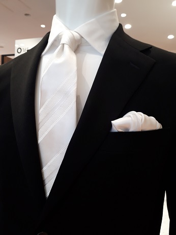 フォーマルはスーツだけでなくタイ、チーフなど小物系も充実してます。
