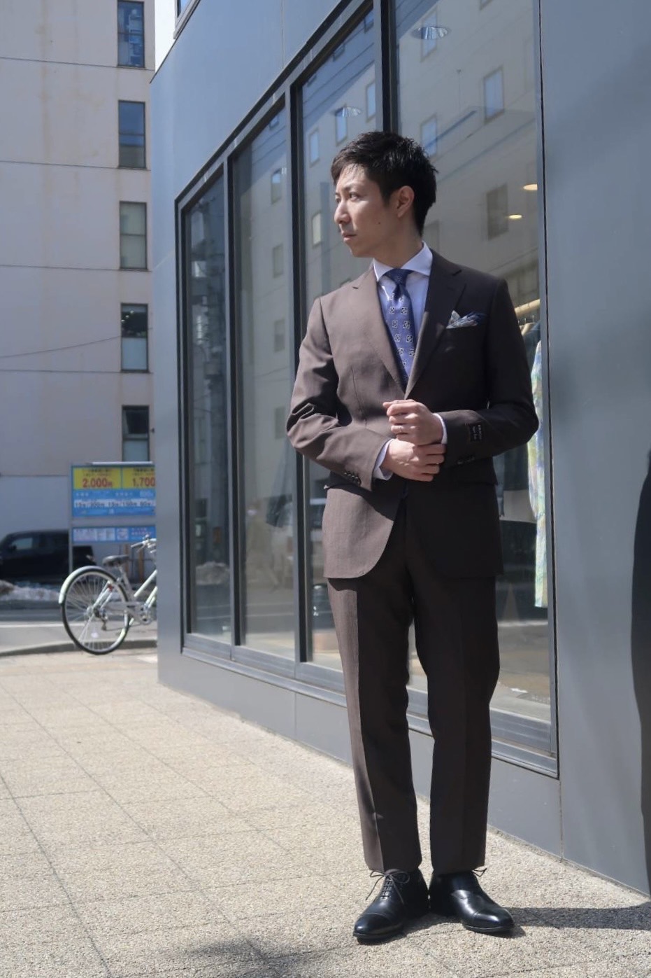 スーツの雰囲気を活かしたコーディネートです😊✨