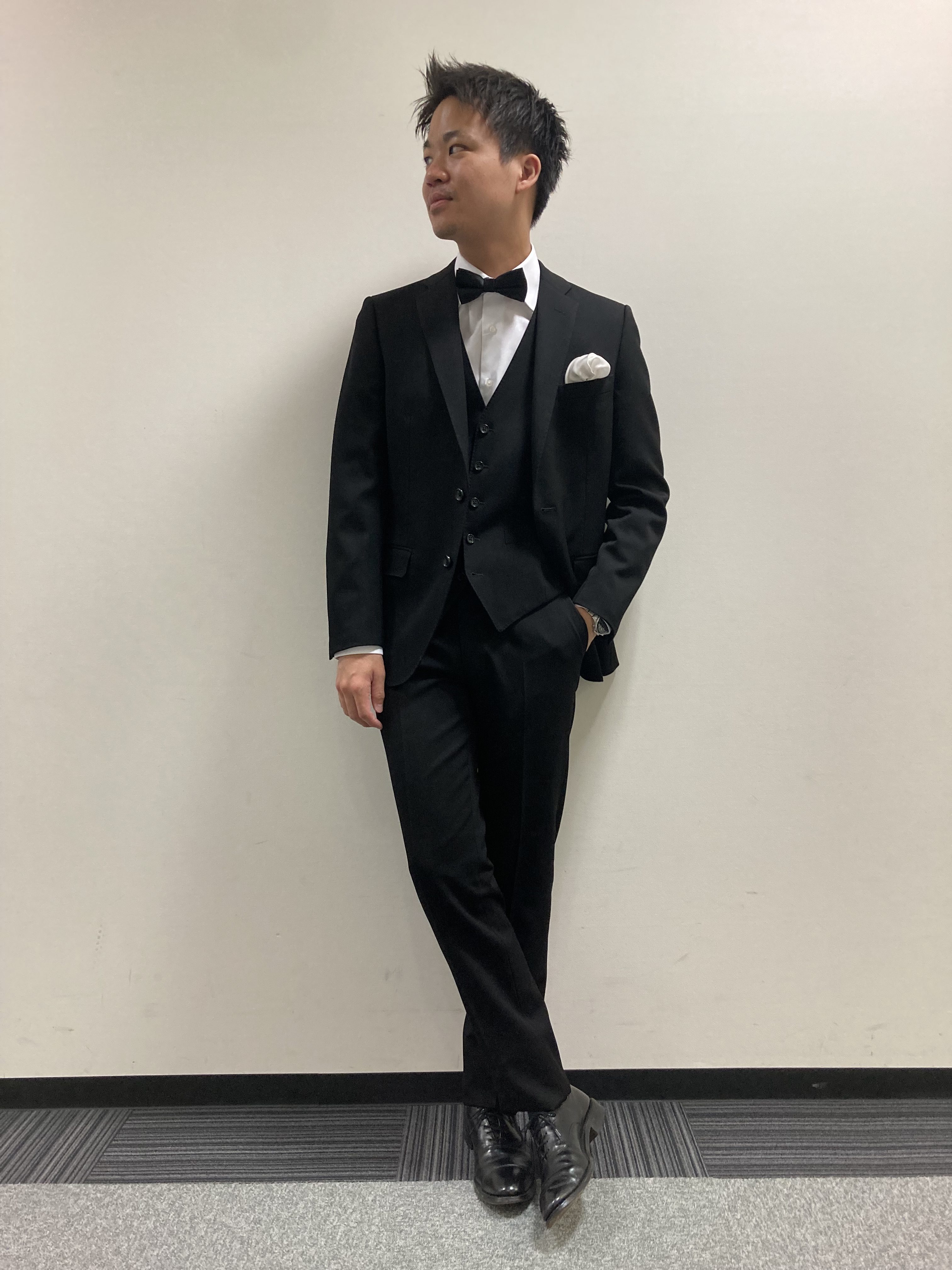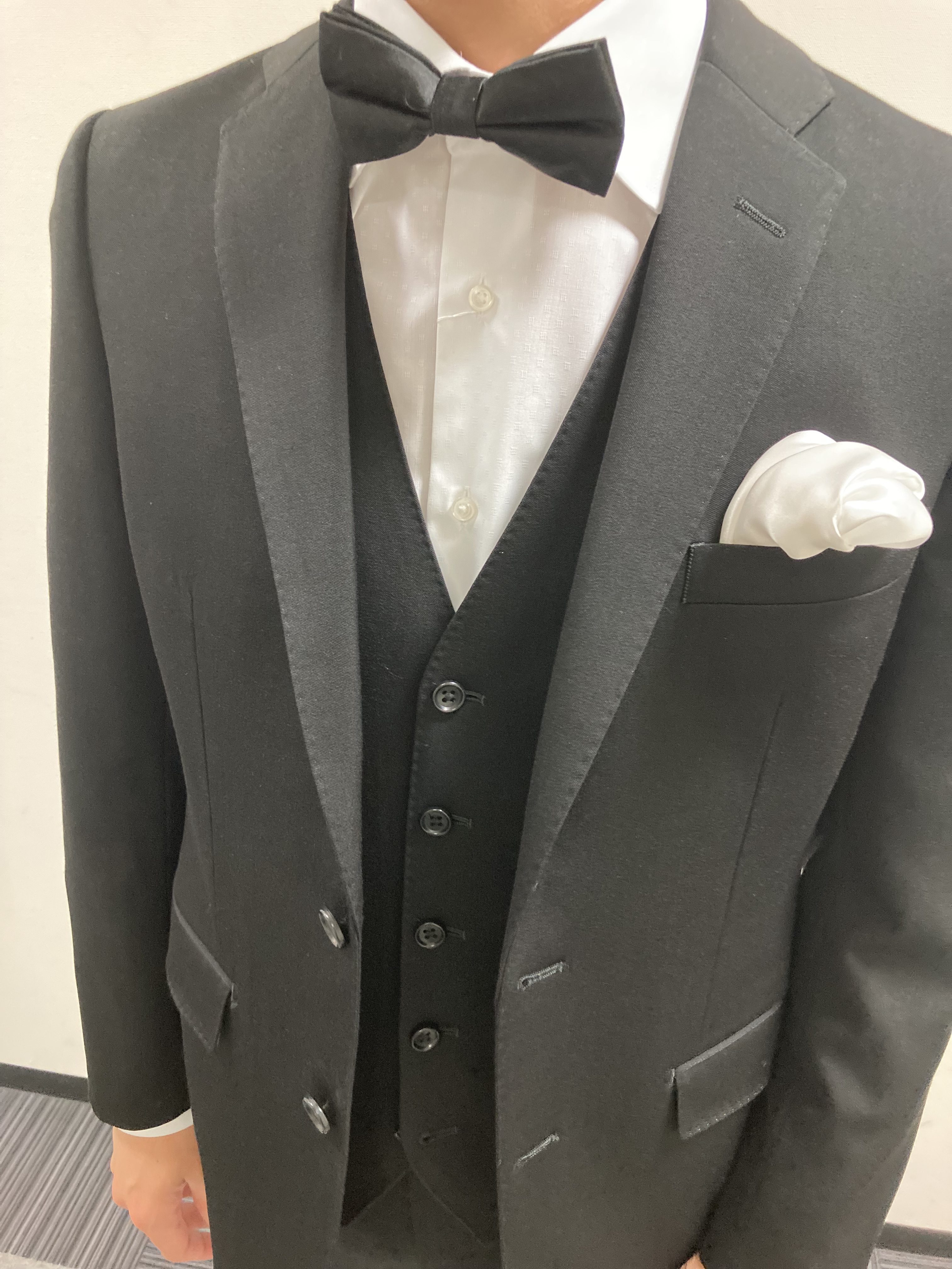胸回りも白のチーフや蝶ネクタイで華やかに✨