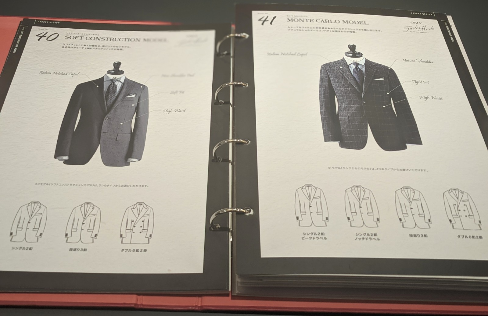 「モデル」や「オプション」など自分好みにカスタマイズできますので、ほかにはない一着をこだわって仕立てたい方に最適です。