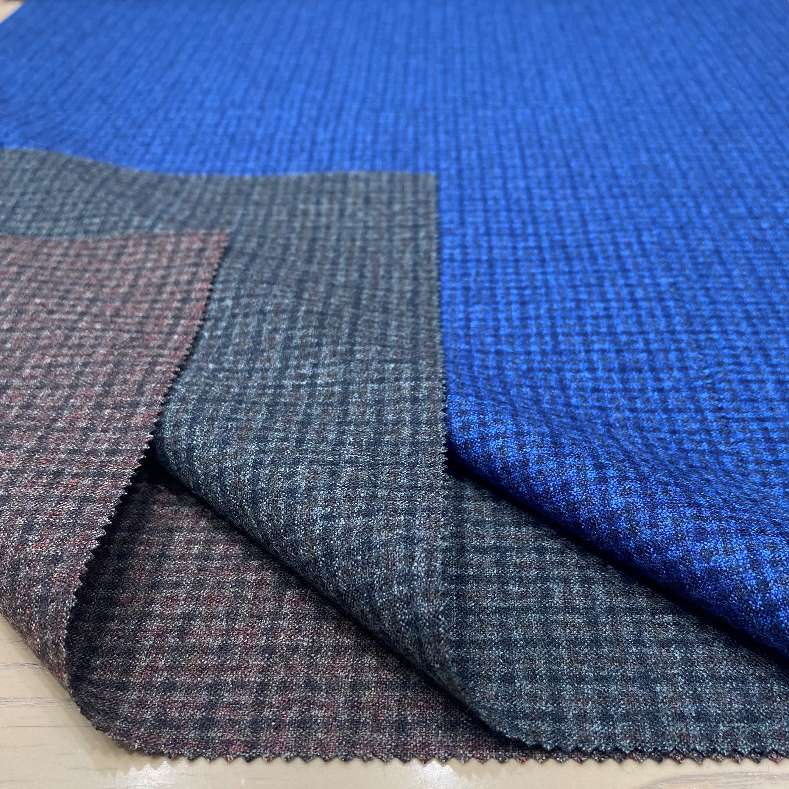 カシミア混ウールにコットンをプラスすることで起毛感がありながら薄手の生地感でロングシーズン着用可能な生地になります。