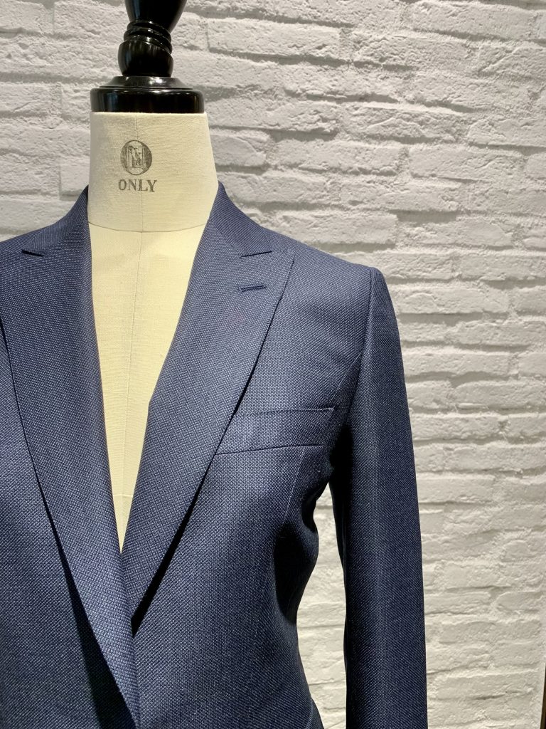 普通のノッチドラペルという襟型も選べますが、オーダースーツの場合は個性を発揮してピークにされる方も多いですね。