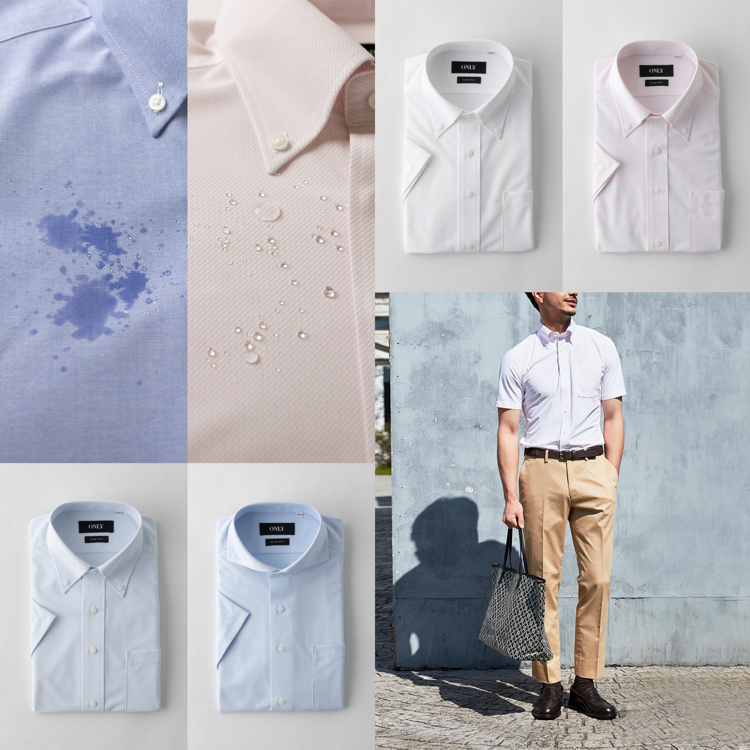 雨をはじき飛ばす撥水加工を施したシャツを2襟×2カラーの4種展開!!