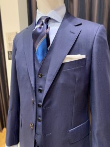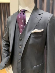 3ピースはVゾーンが狭くなるので大柄のネクタイも華美になりすぎません。