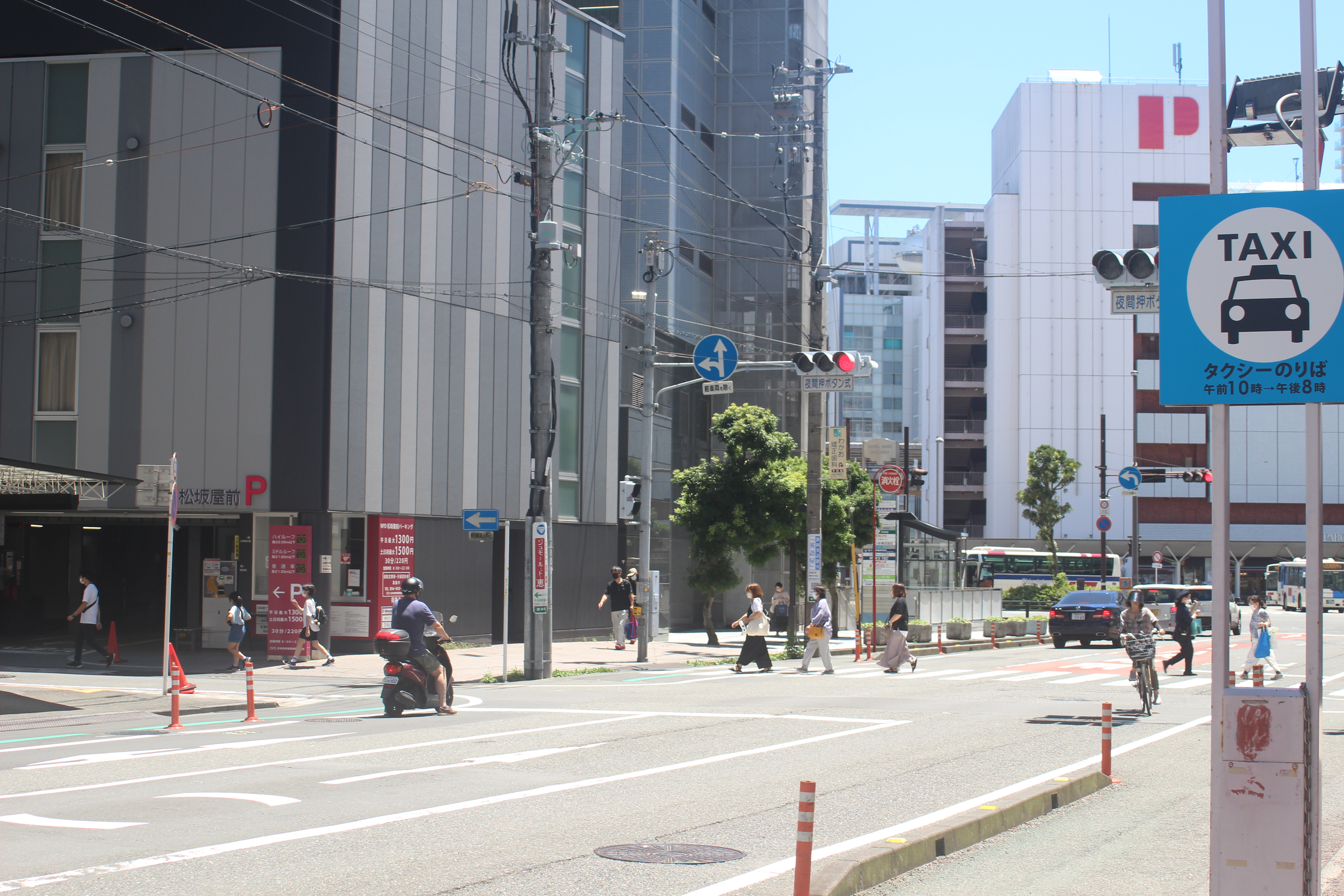 写真の左側に松坂屋前パーキングがあります!この信号を左に曲がると…