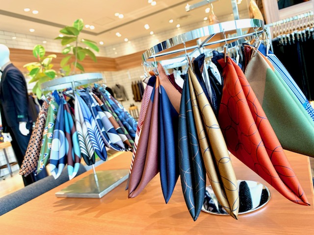 ONLYコレットマーレ店にはシルク混スーツや、オーダーにも使用されていた高級生地を用いた既製品など、