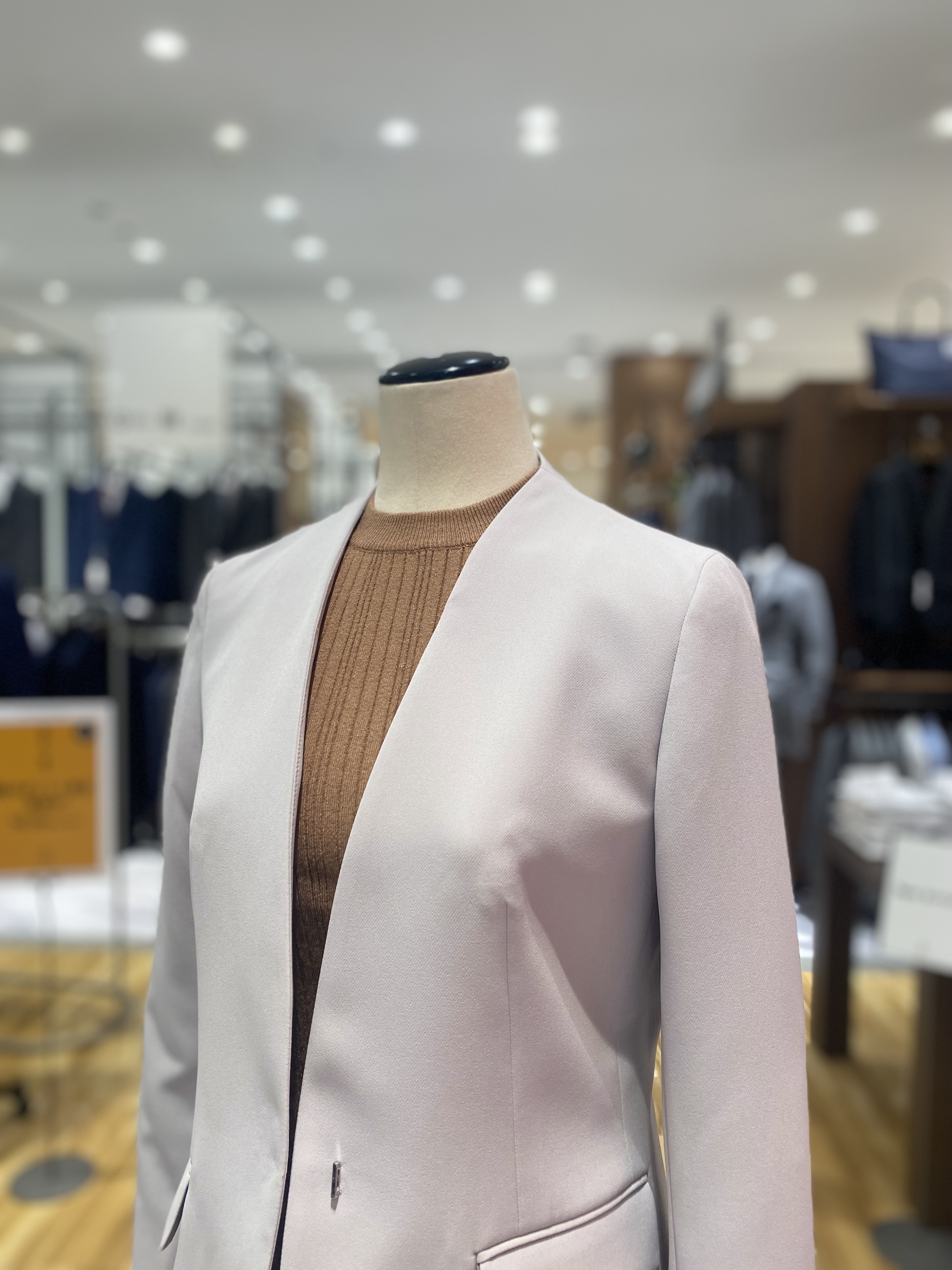 ここ数シーズンのトレンドである、[スタッフ一押しノーカラースーツ特集]です!