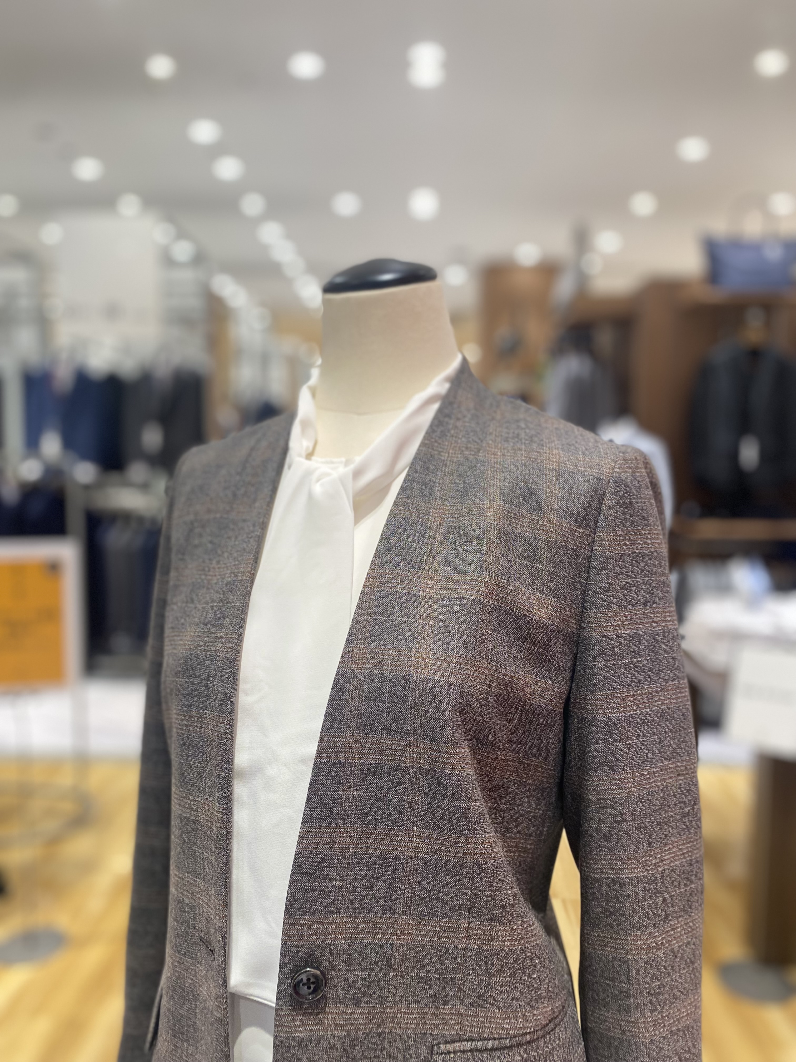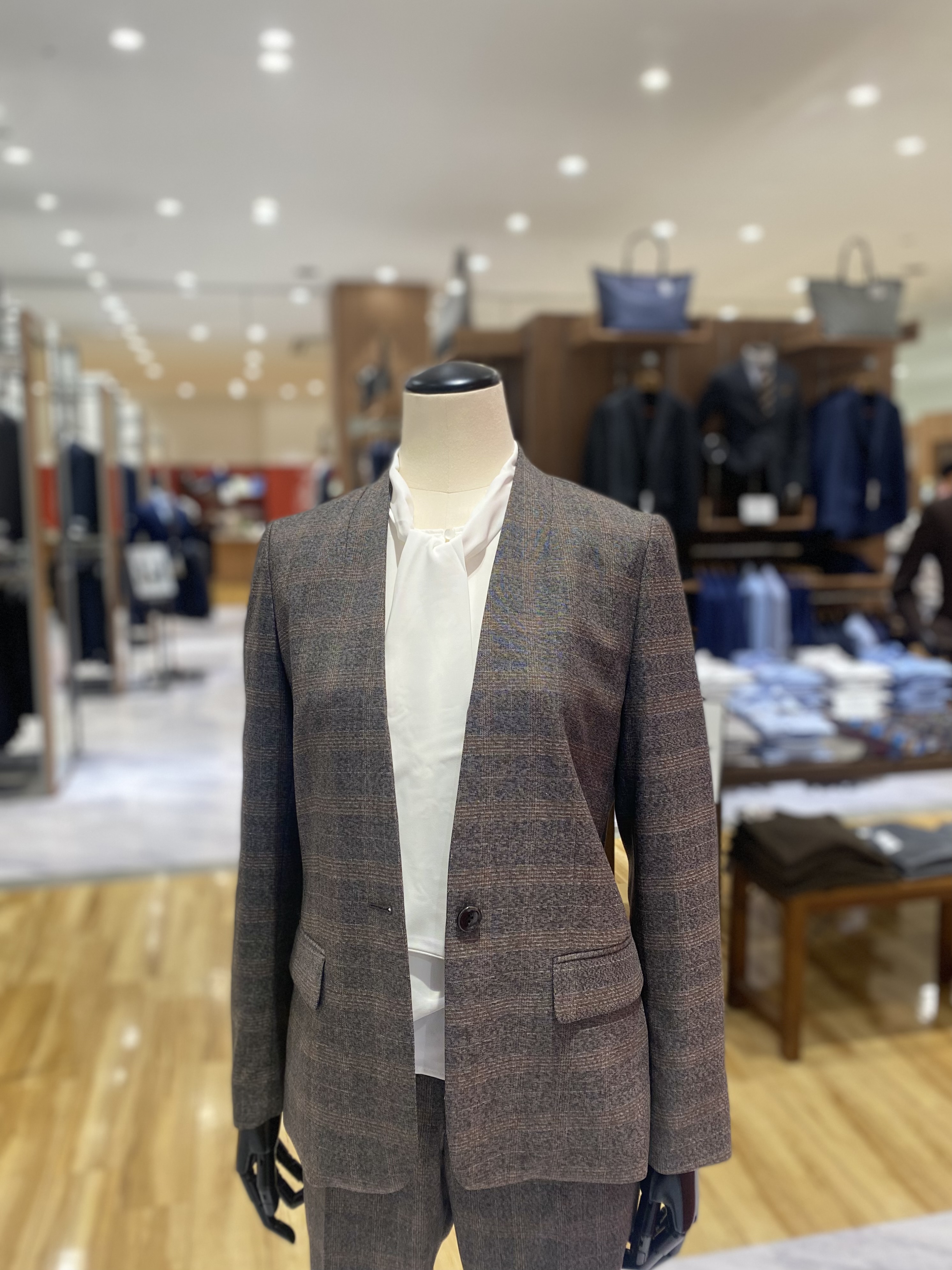 今年の秋冬は、人気のノーカラースーツをオシャレに着こなしてみませんか~!?🎵