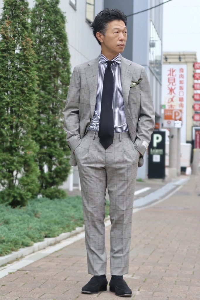 王道、グレンチェックスーツからご紹介✨