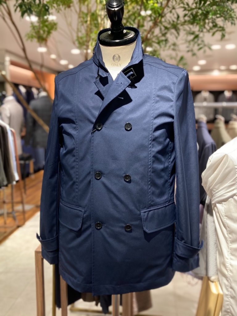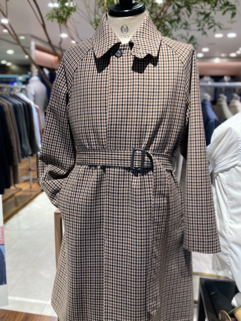 ベースはステンカラーコートながら、ラグランスリーブ、ベルテッド仕様で洒落感のある1着です。