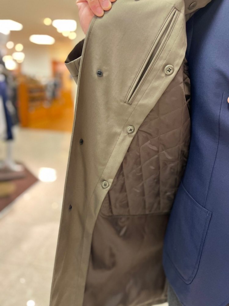 生地に艶感がり、またストレッチ性もあるので見た目と良い着心地兼ね備えた万能コートとなっております。