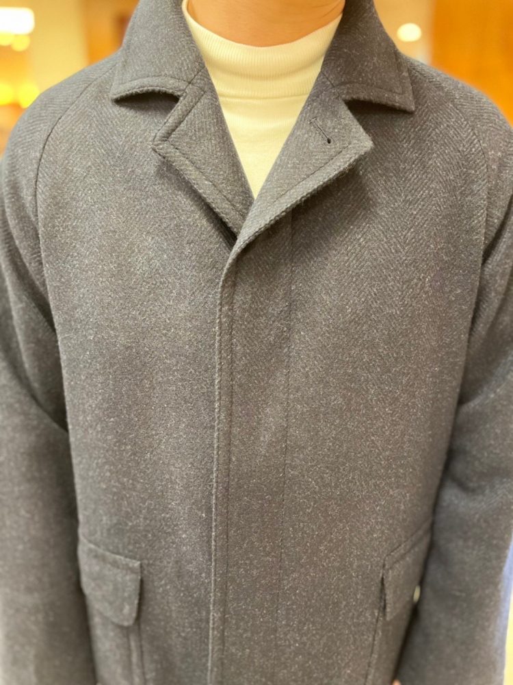 生地にはウール以外にもカシミアが含まれており、また肩回りが柔らかくなるように仕上げているので重すぎない所もポイントです♪