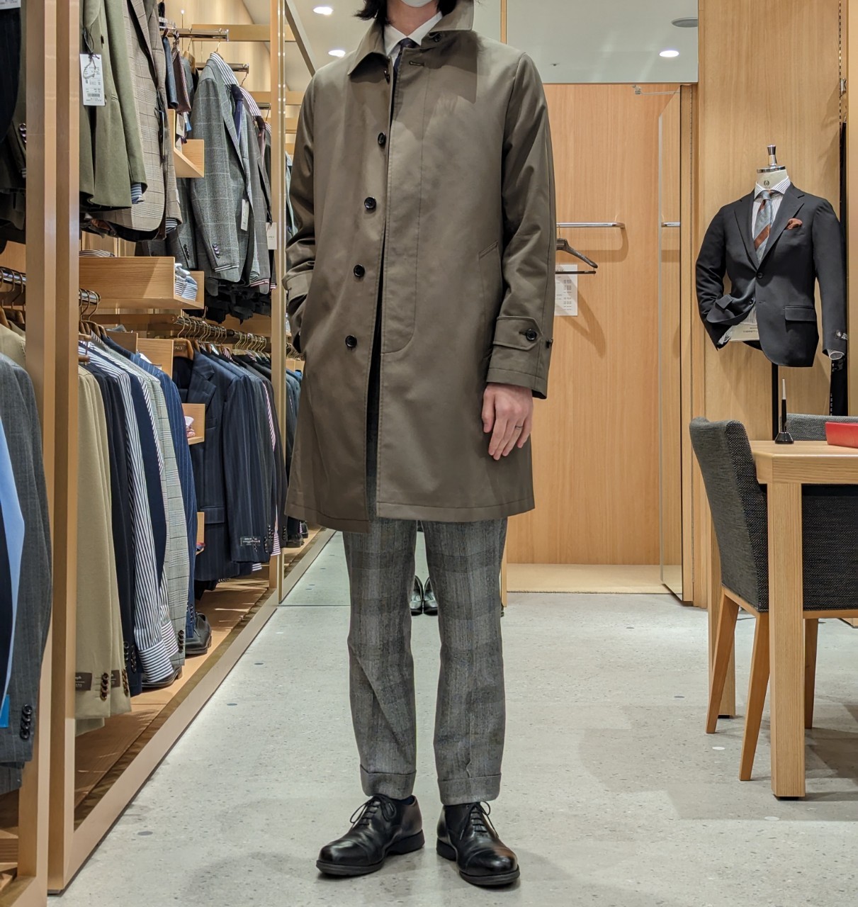 コットン混ステンカラーコート