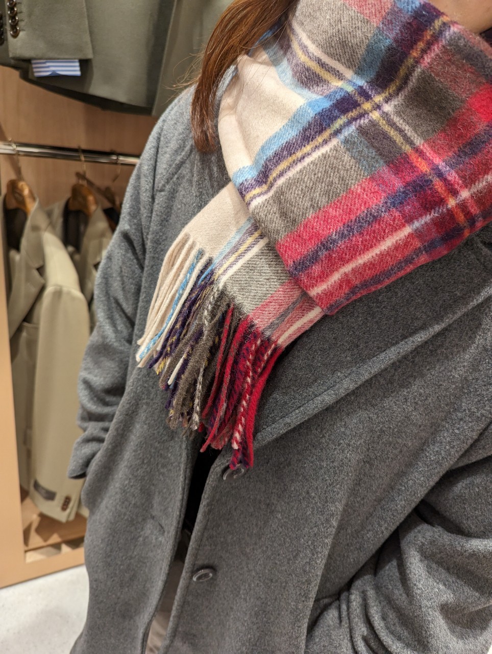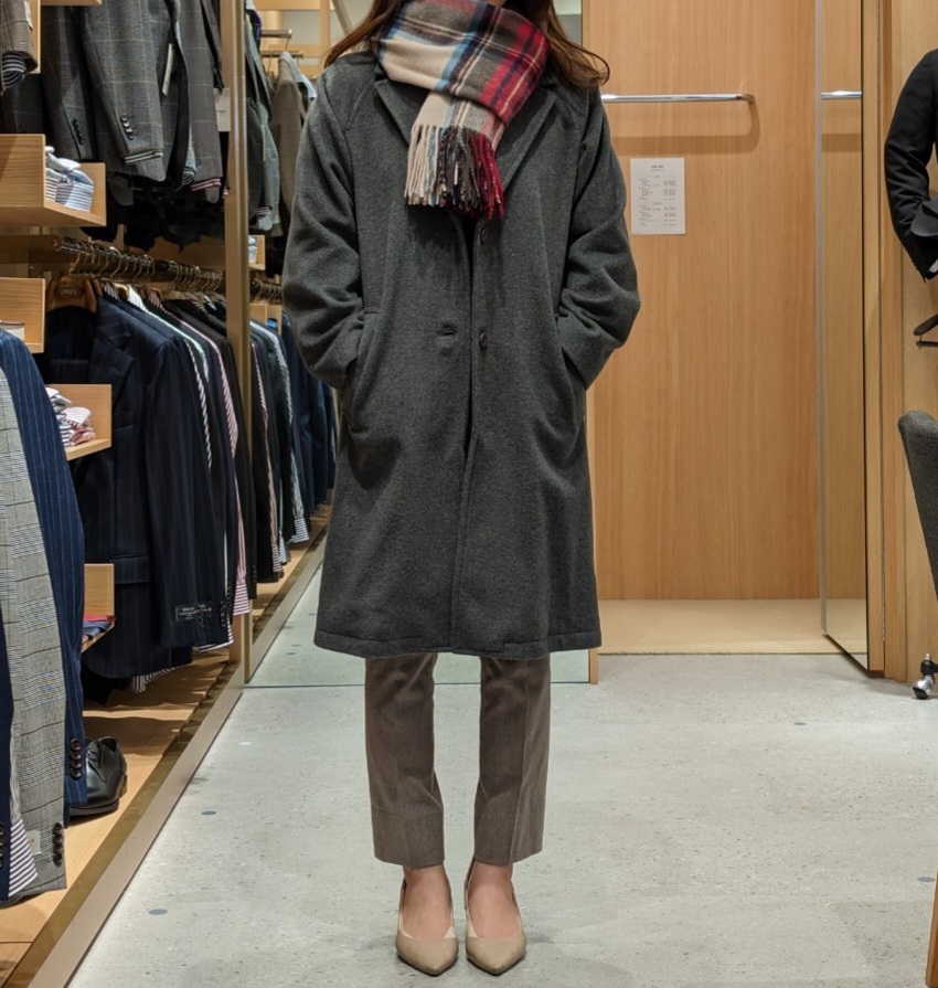 グレーの色味もシンプルで色柄のあるマフラーなどの小物とも合わせやすいので