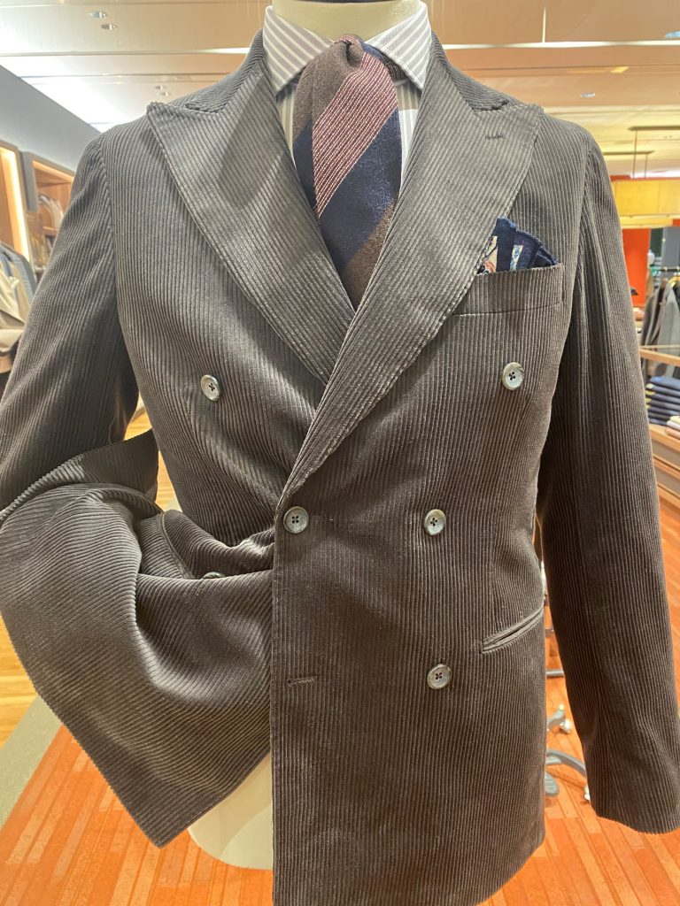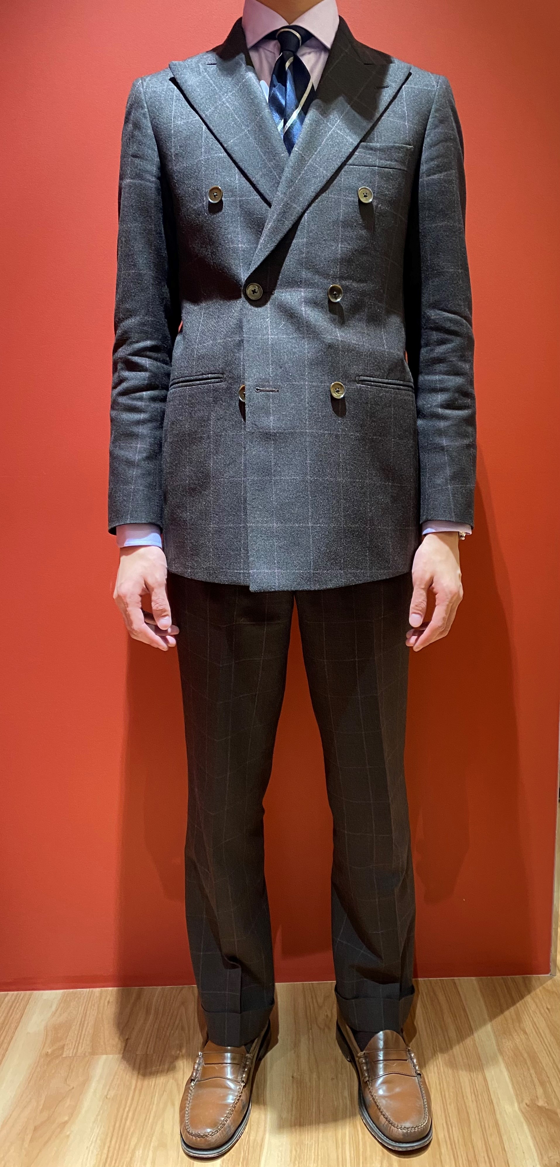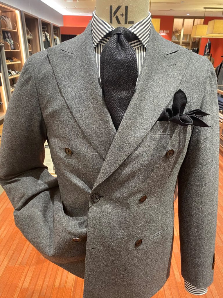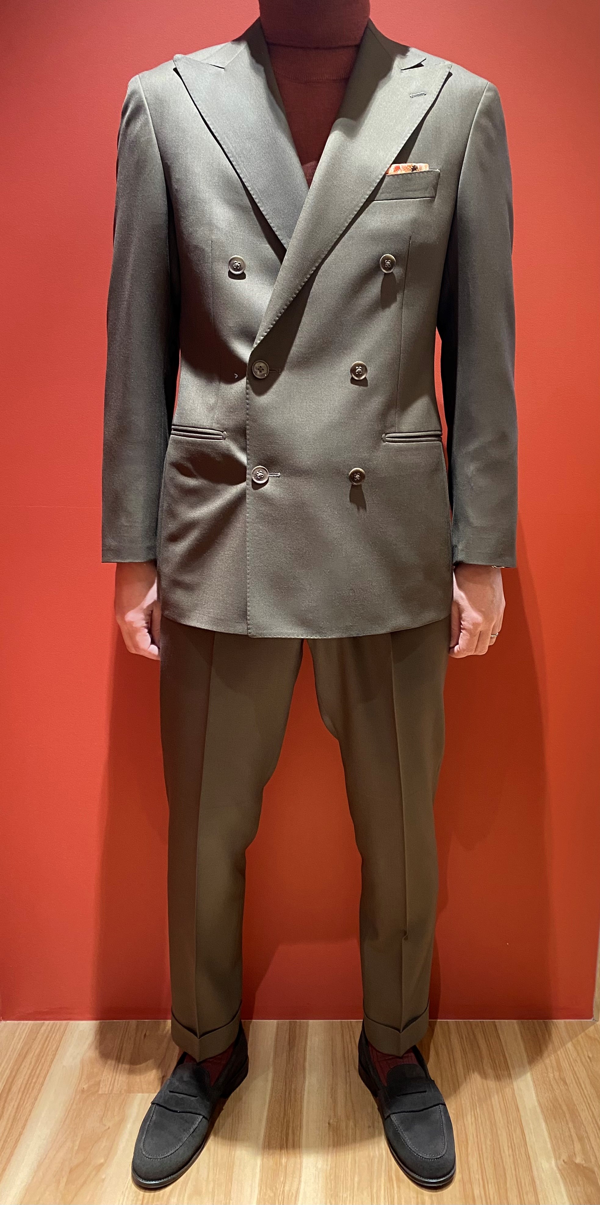 さて次は、近年トレンドのダブルブレストスーツ。