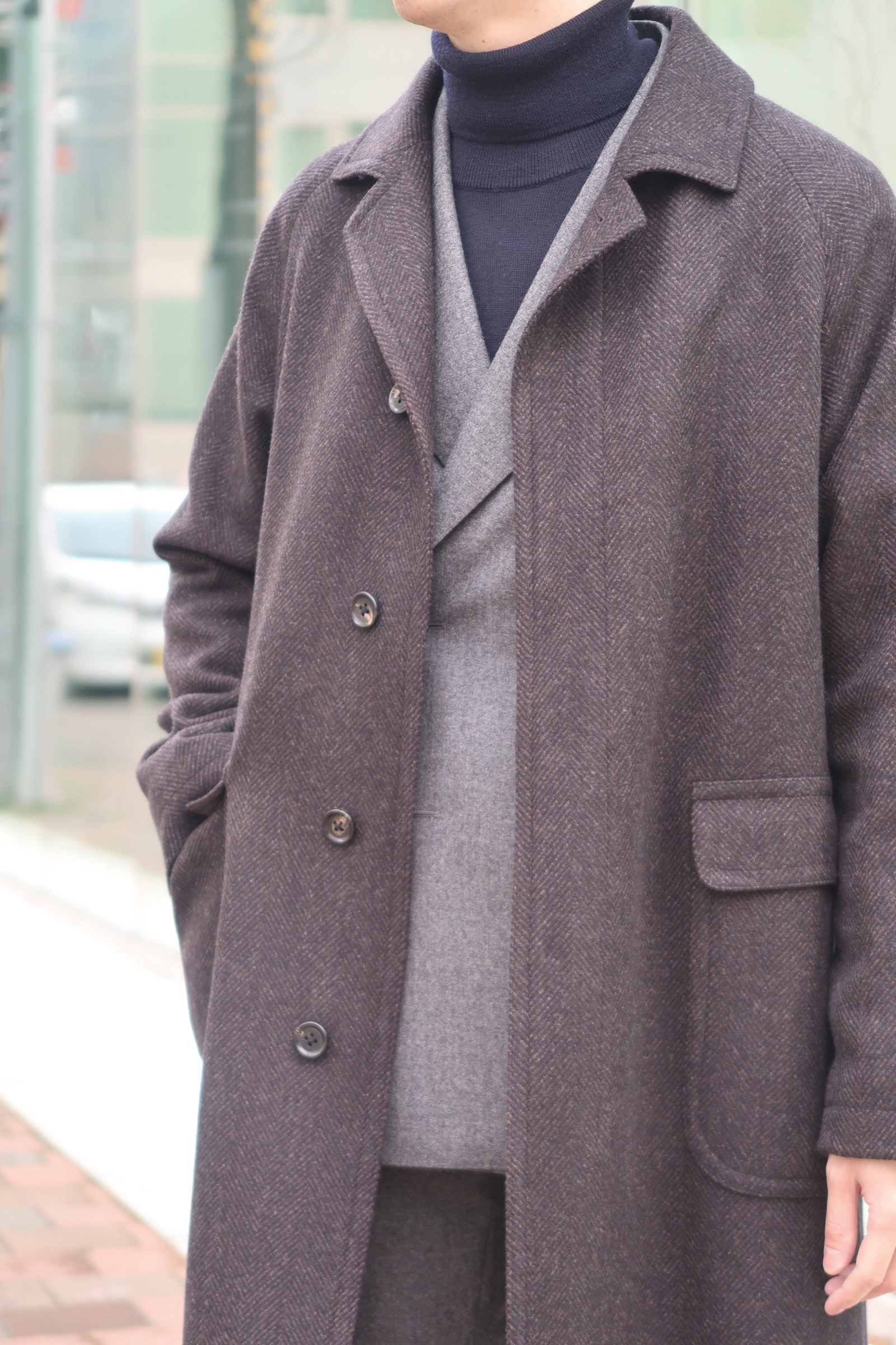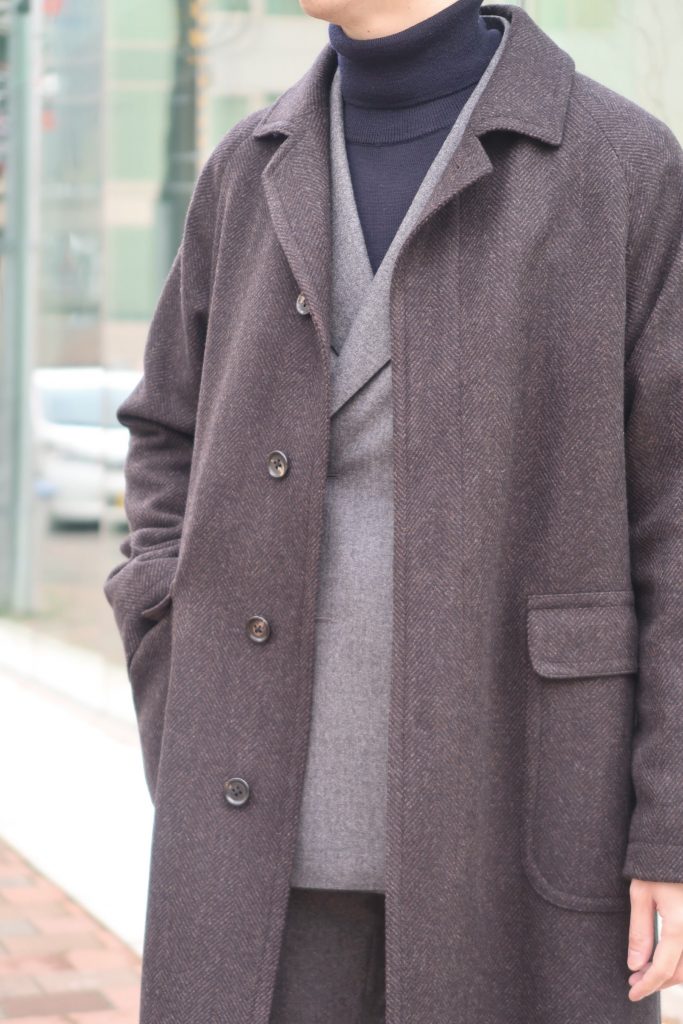 リラックスしたシルエットのバルカラーコートはクラシックなスタイリングとの コントラストが絶妙な1着👔✨