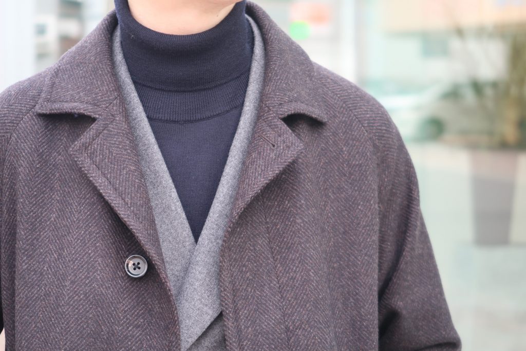 普遍的な正統派でありながら様々な着こなしへの 対応力があり、スーツ×ニットの合わせにこのコートが最もよく映えます✨
