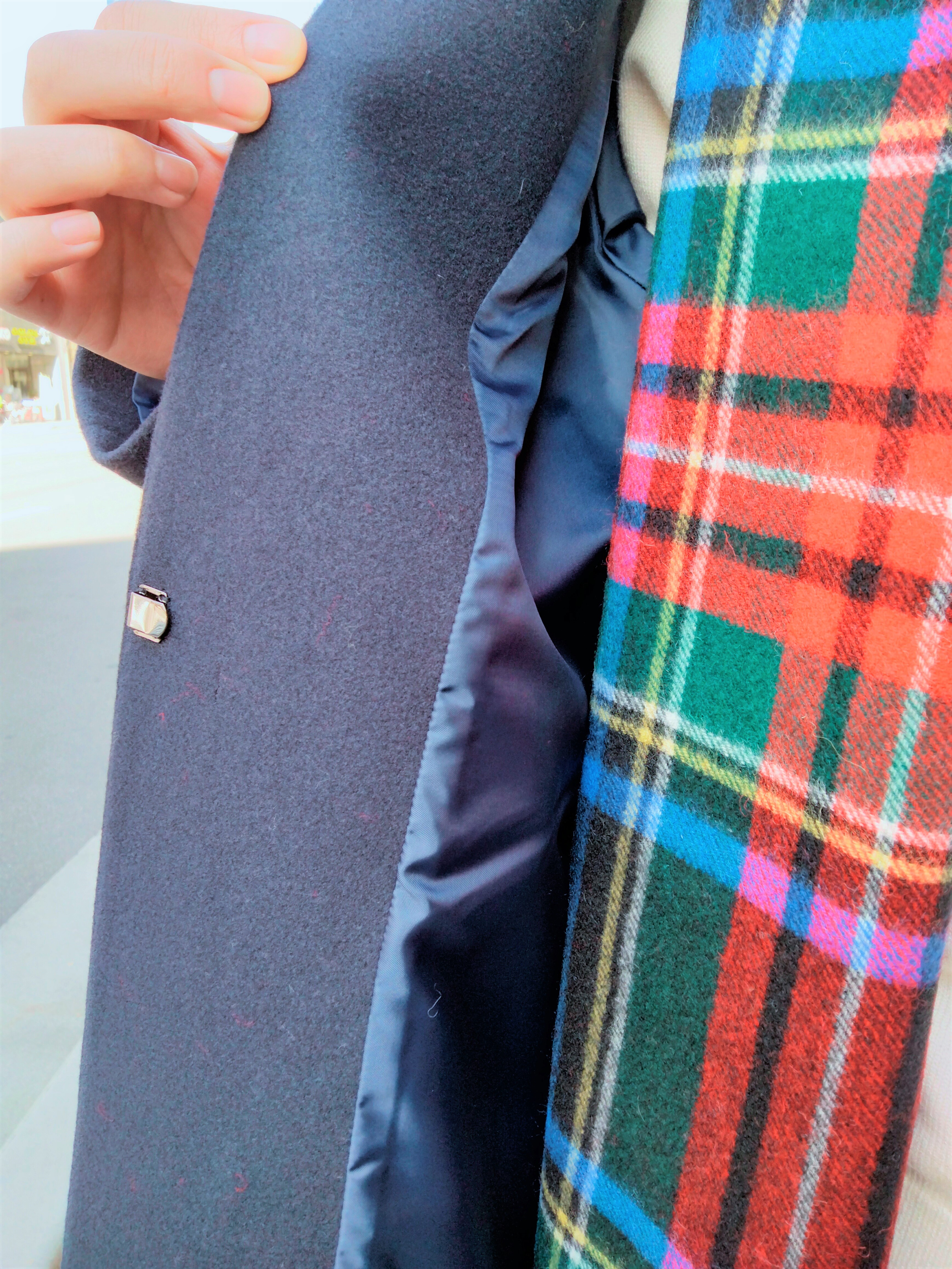 中にニットやスーツの重ね着をしやすいコートです(*^▽^*)