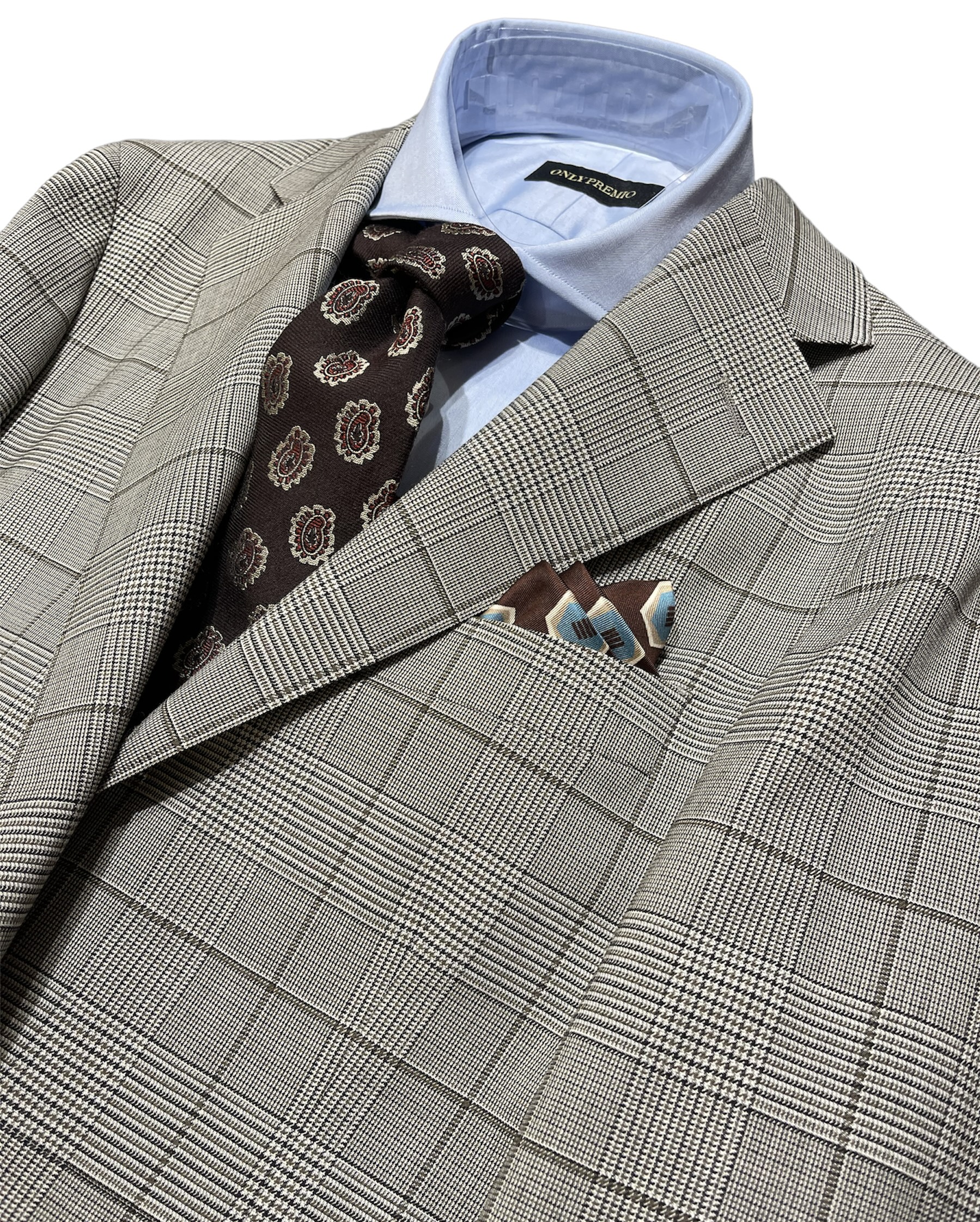 最後はこちらのグレーのグレンチェック柄のスーツです!